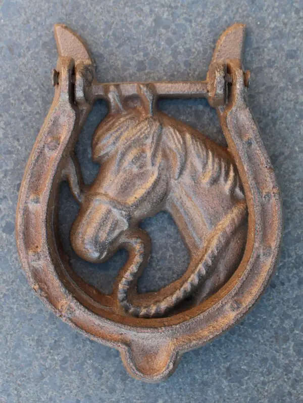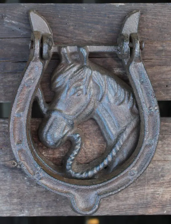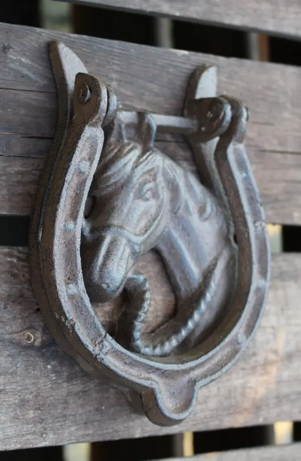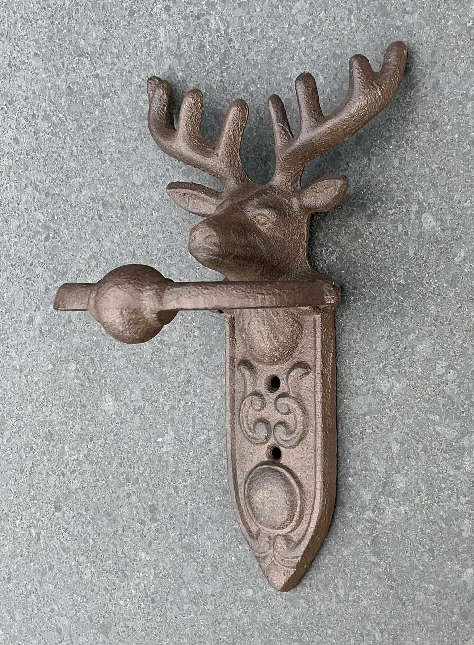 Mooie gietijzeren deurklopper in de vorm van een hert met gewei.