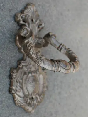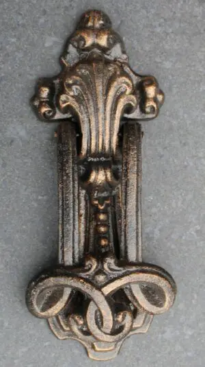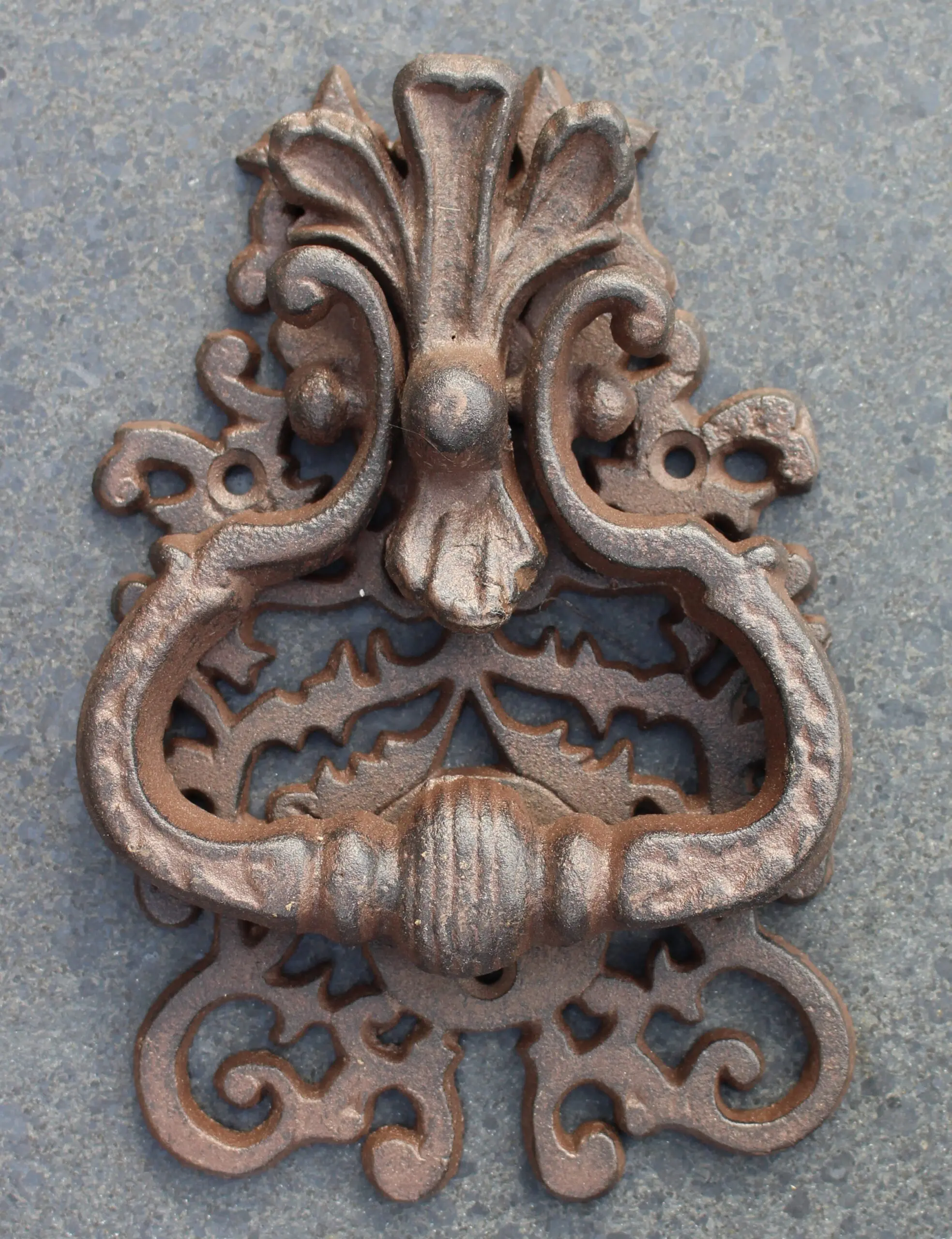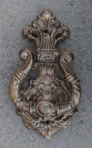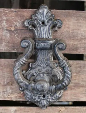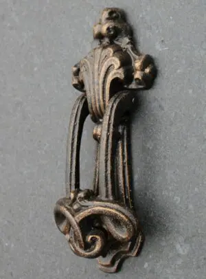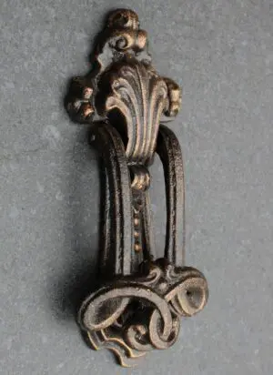 Deze sierlijke gietijzeren deurklopper is een blikvanger op uw deur.