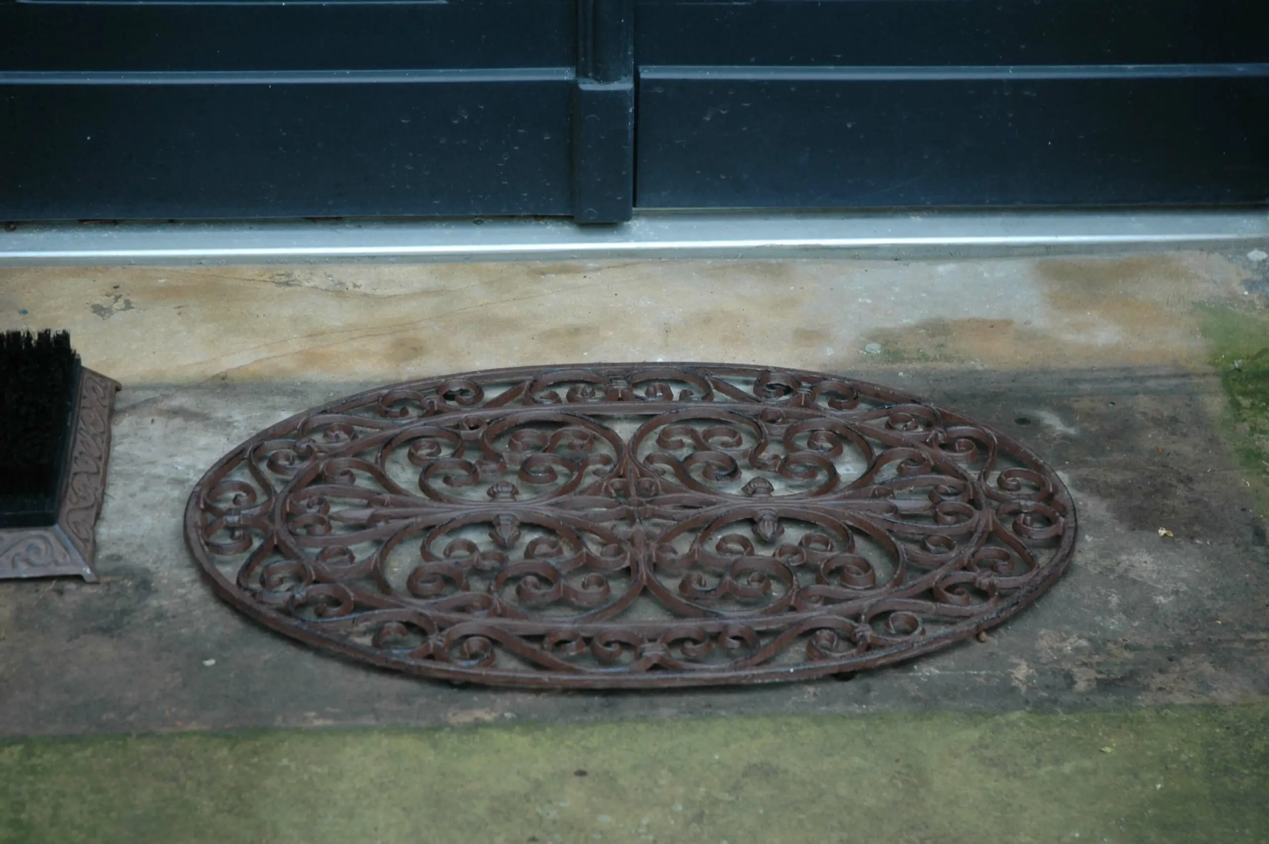 Deze gietijzeren ovale deurmat is een binnenkomer in uw huis.