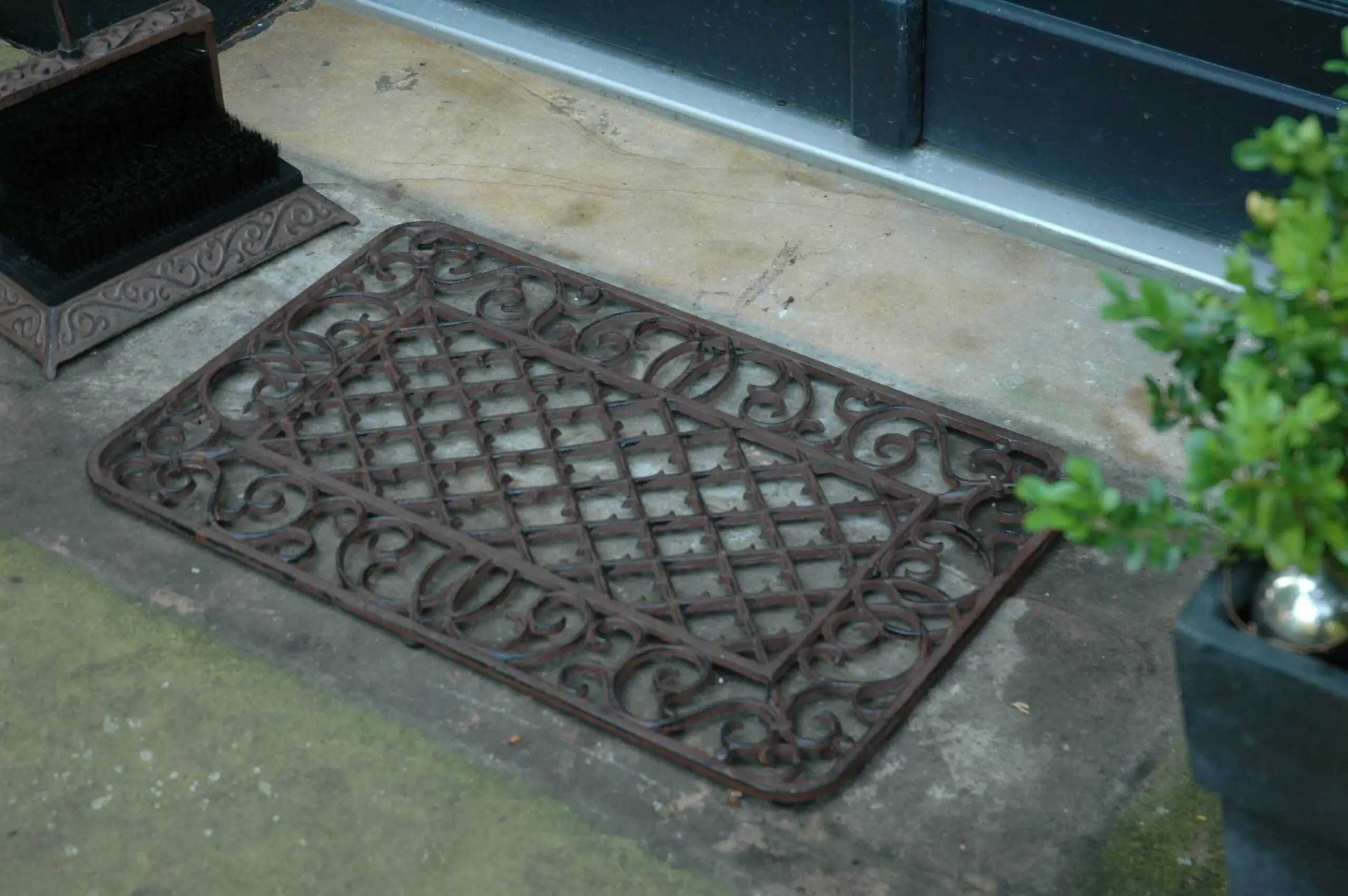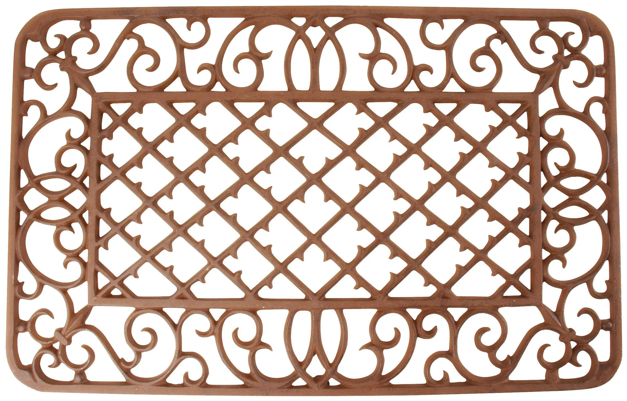 rechthoekige gietijzeren deurmat met ronde hoeken donkerbruin
