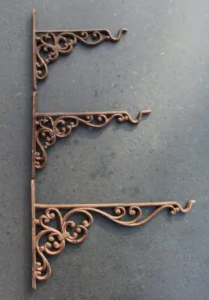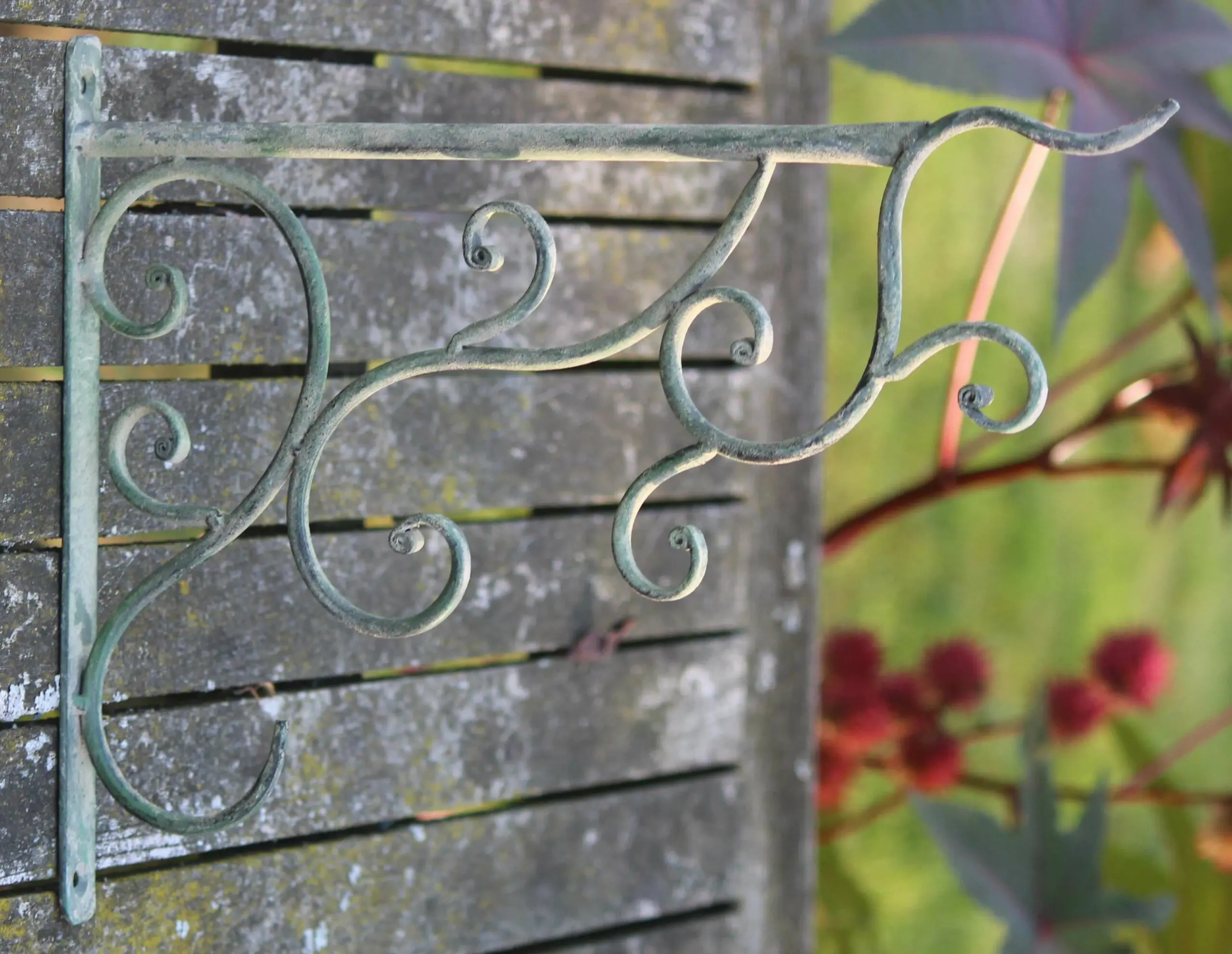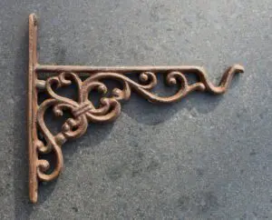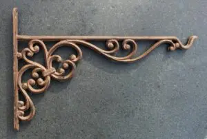 Decoratieve wandhaak van metaal waarvan het ijzer oud gemaakt is.