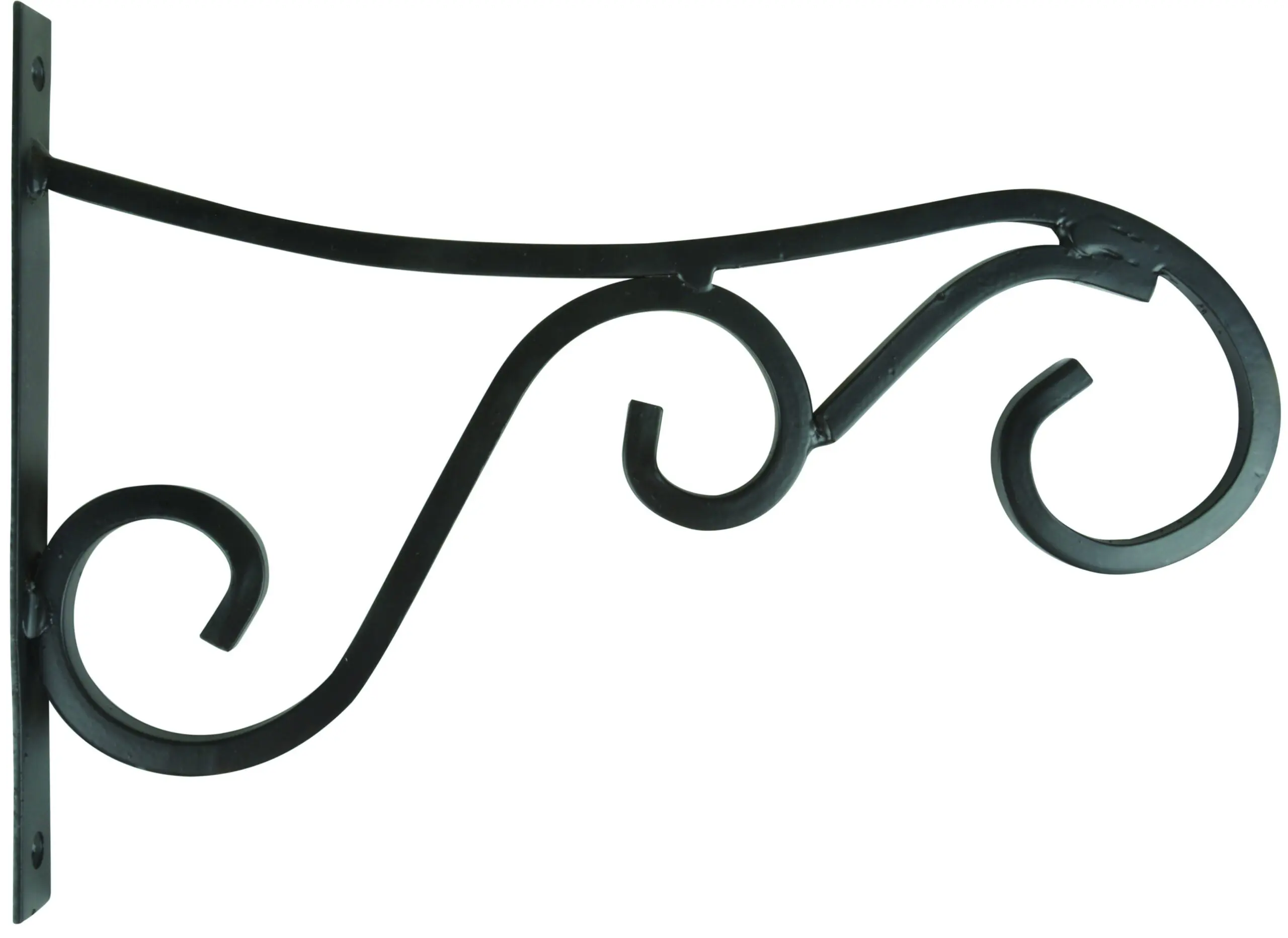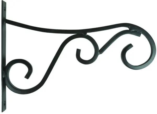 Een zwarte metalen sierlijke haak.