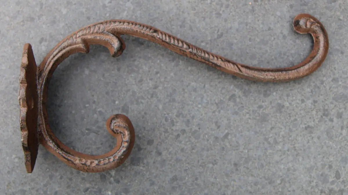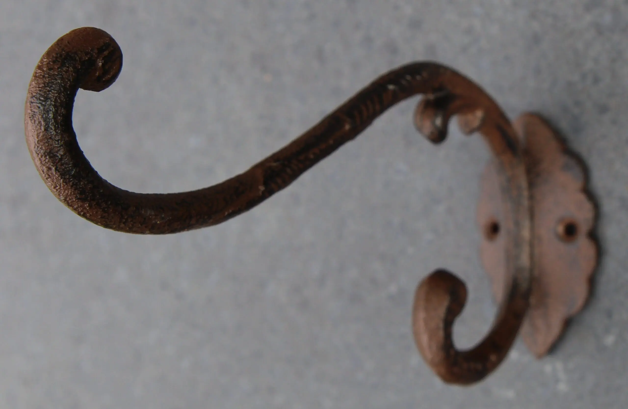Sierlijke gietijzeren wandhaak met dubbele haak.