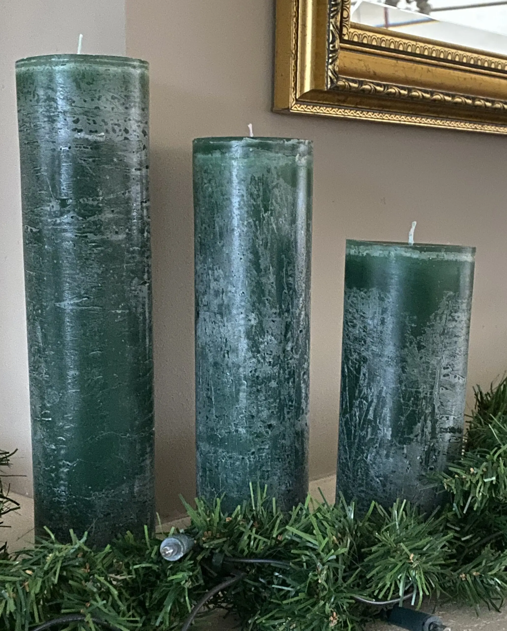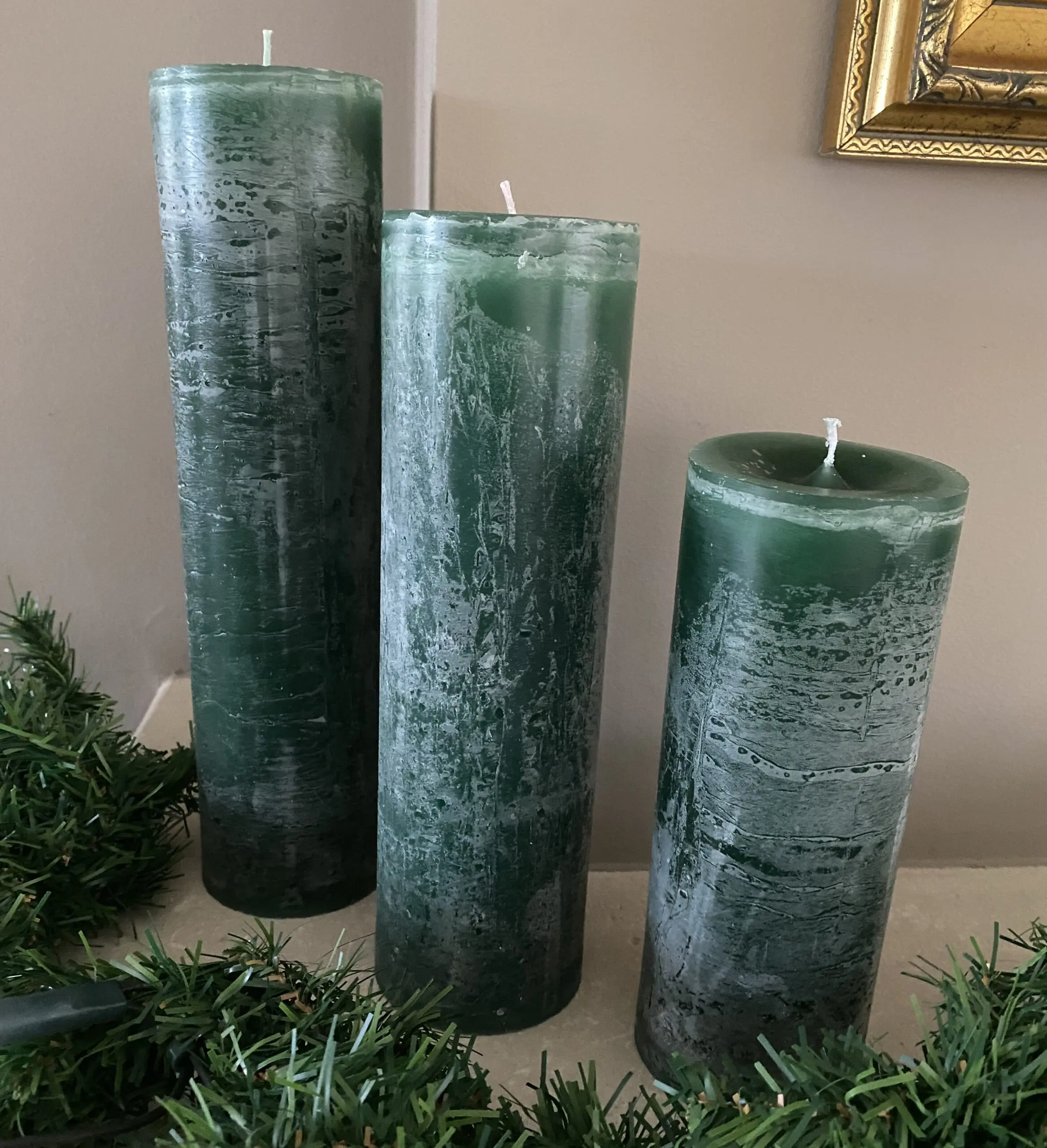 Pakket van 3 Maria Buytaert/Bika kaarsen in de kleur donkergroen/ hulst (kerst)