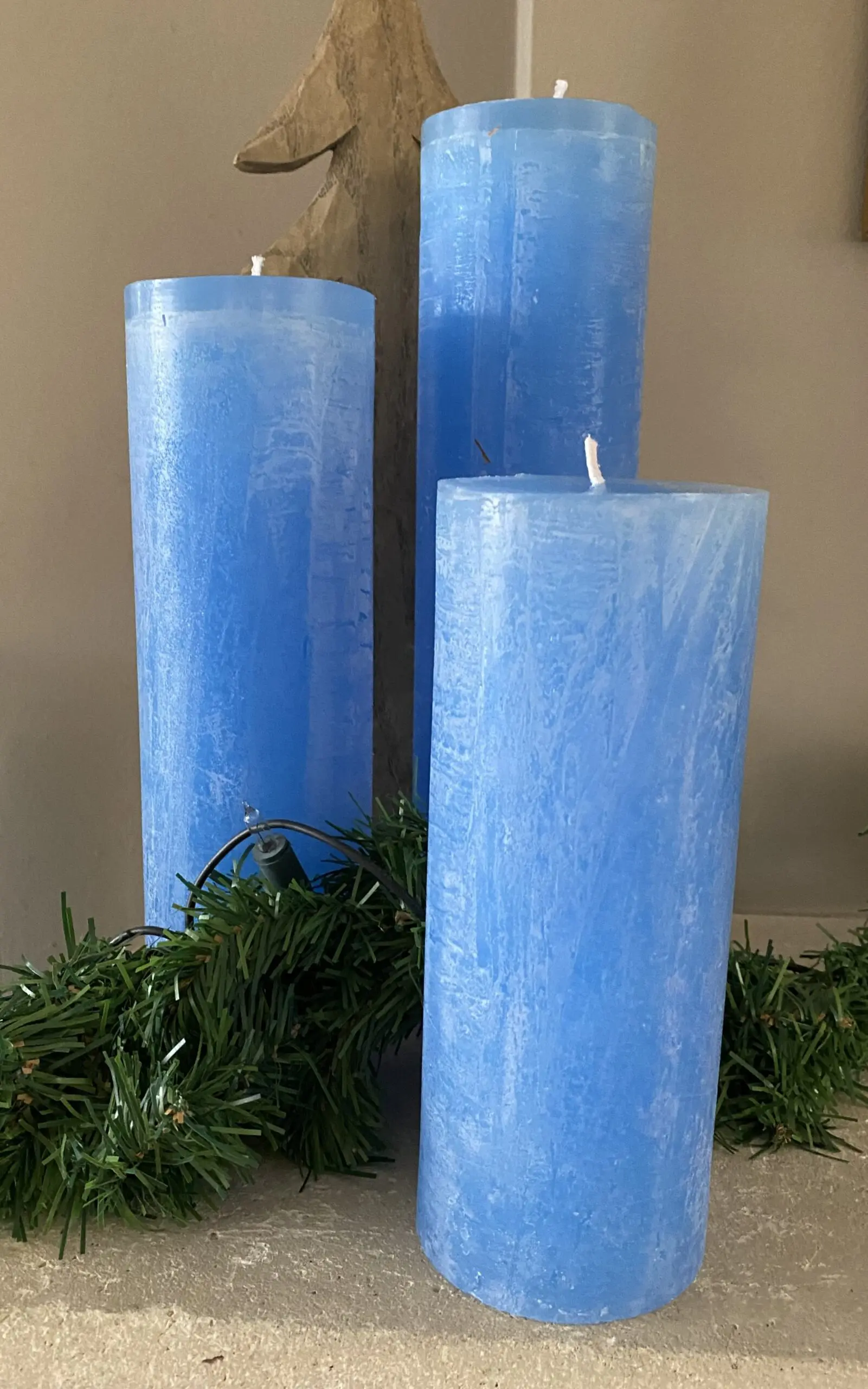 Pakket van 3 Maria Buytaert/Bika kaarsen in de frisse kleur Koningsblauw/ Middenblauw.