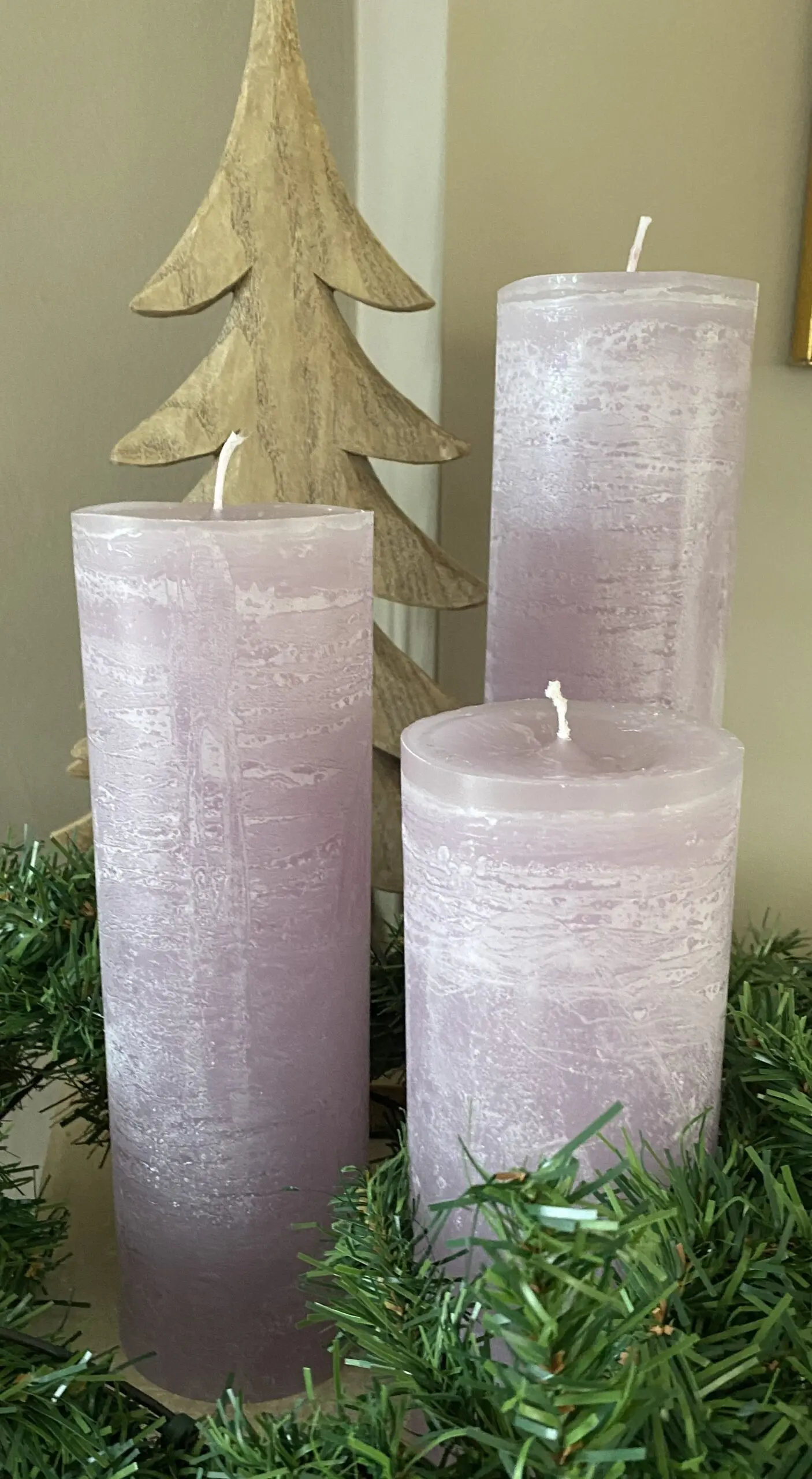 Pakket van 3 Maria Buytaert/Bika kaarsen in de kleur Mauve (soort licht grijs)