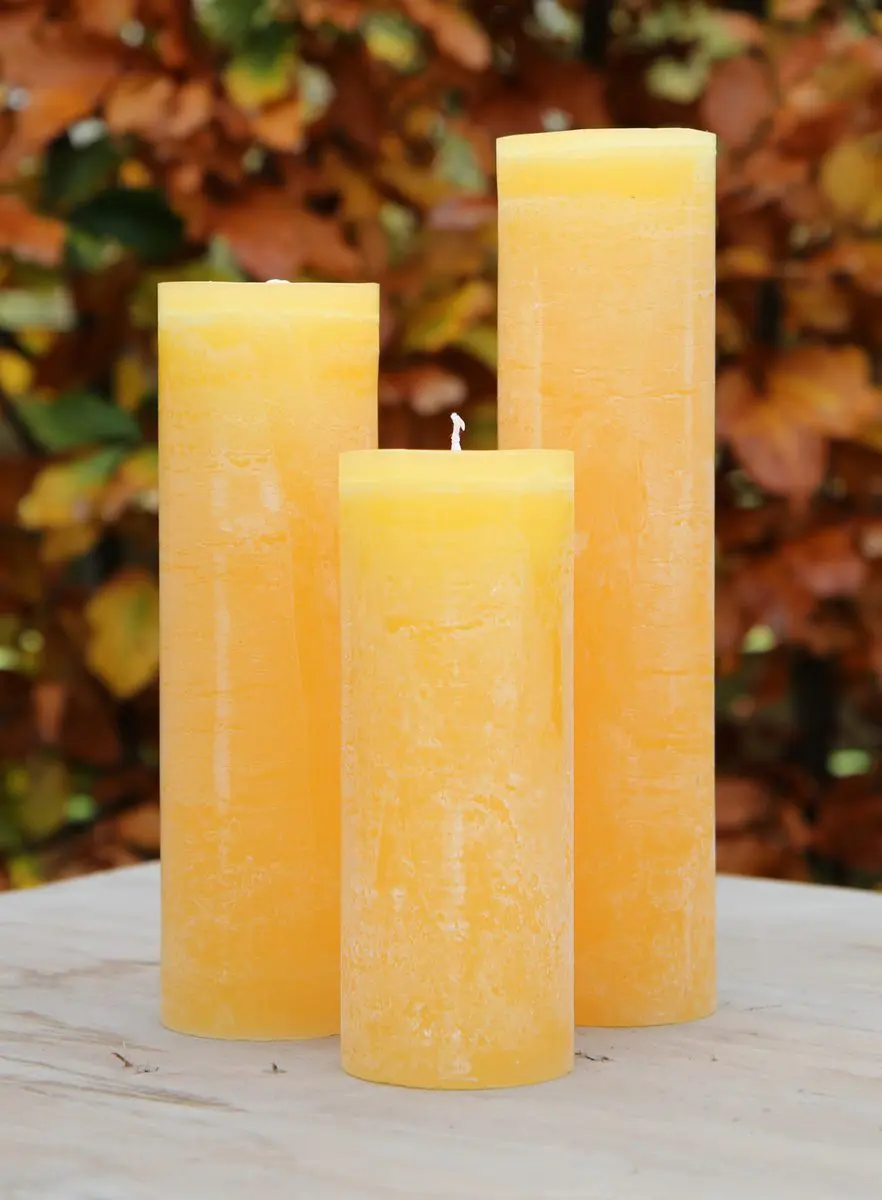 Pakket van 3 Maria Buytaert/Bika kaarsen in de kleur Zonnegeel.