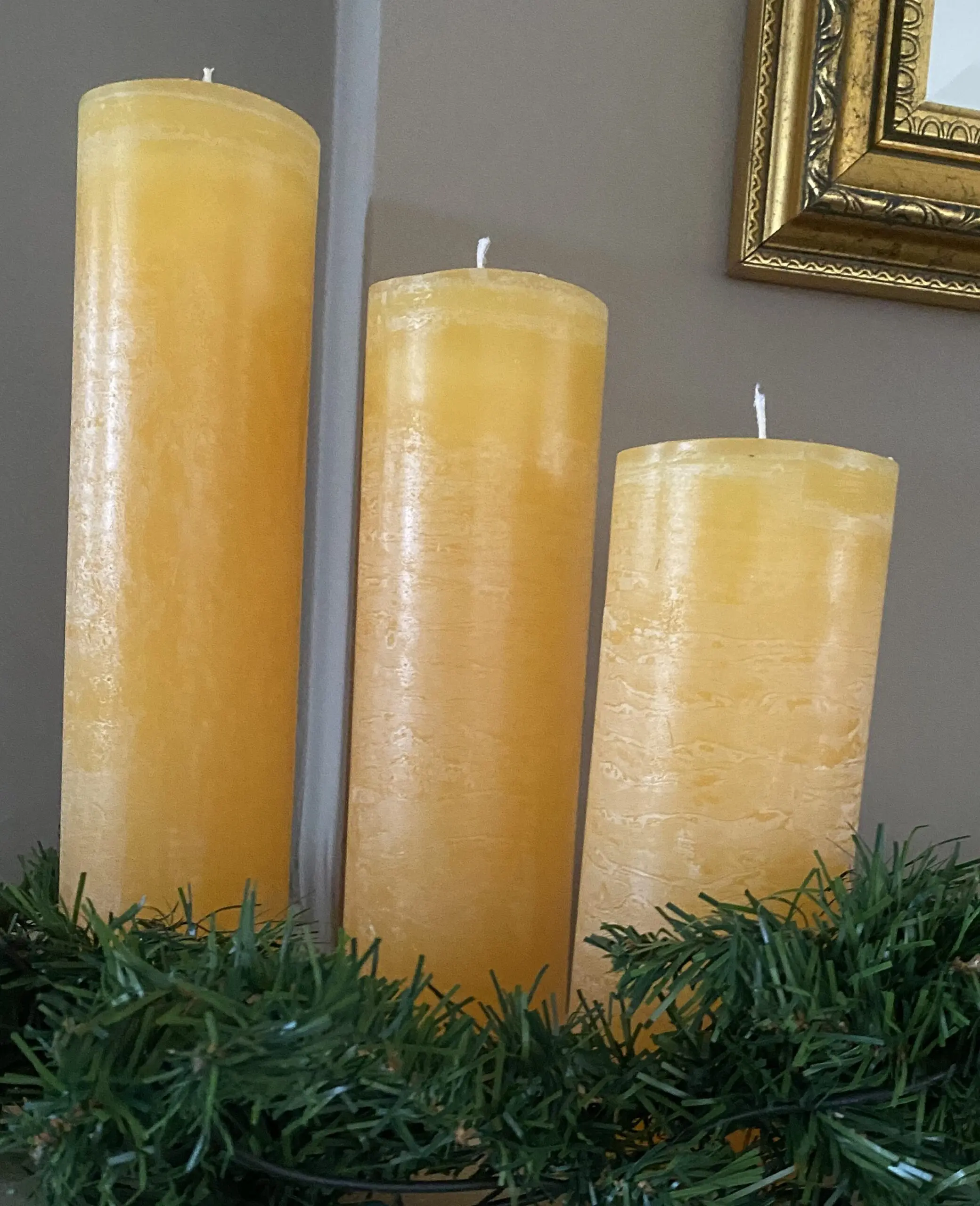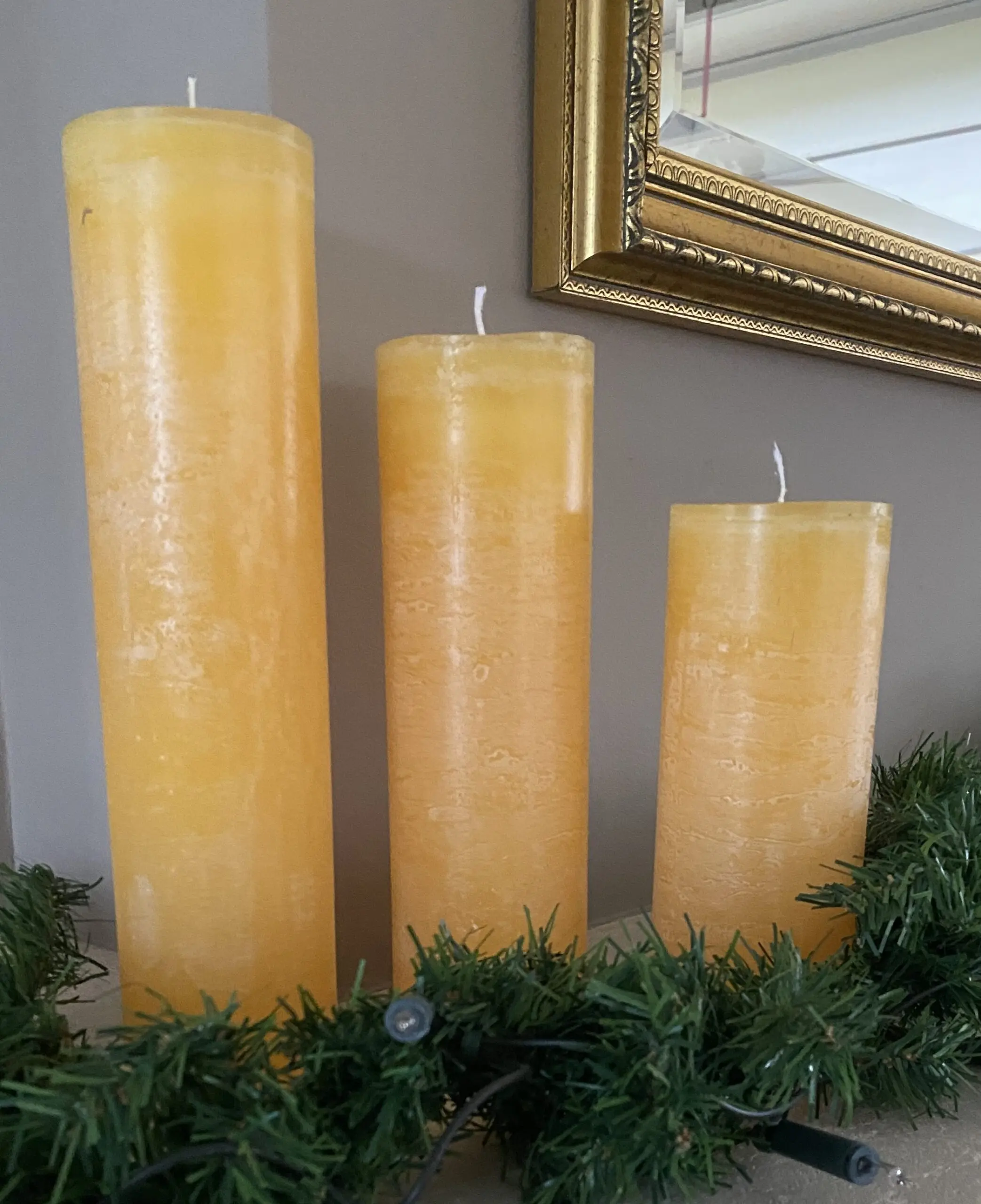 Het pakket bestaat uit een kaars van 18 cm, 22 cm en 27 cm. en een diameter van ongeveer 7 cm.
