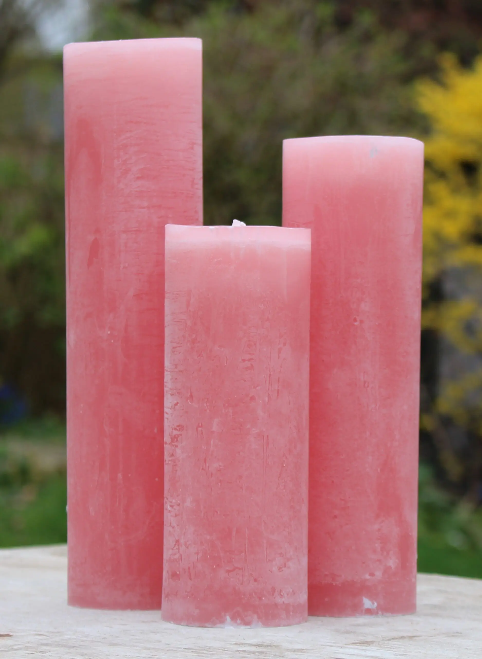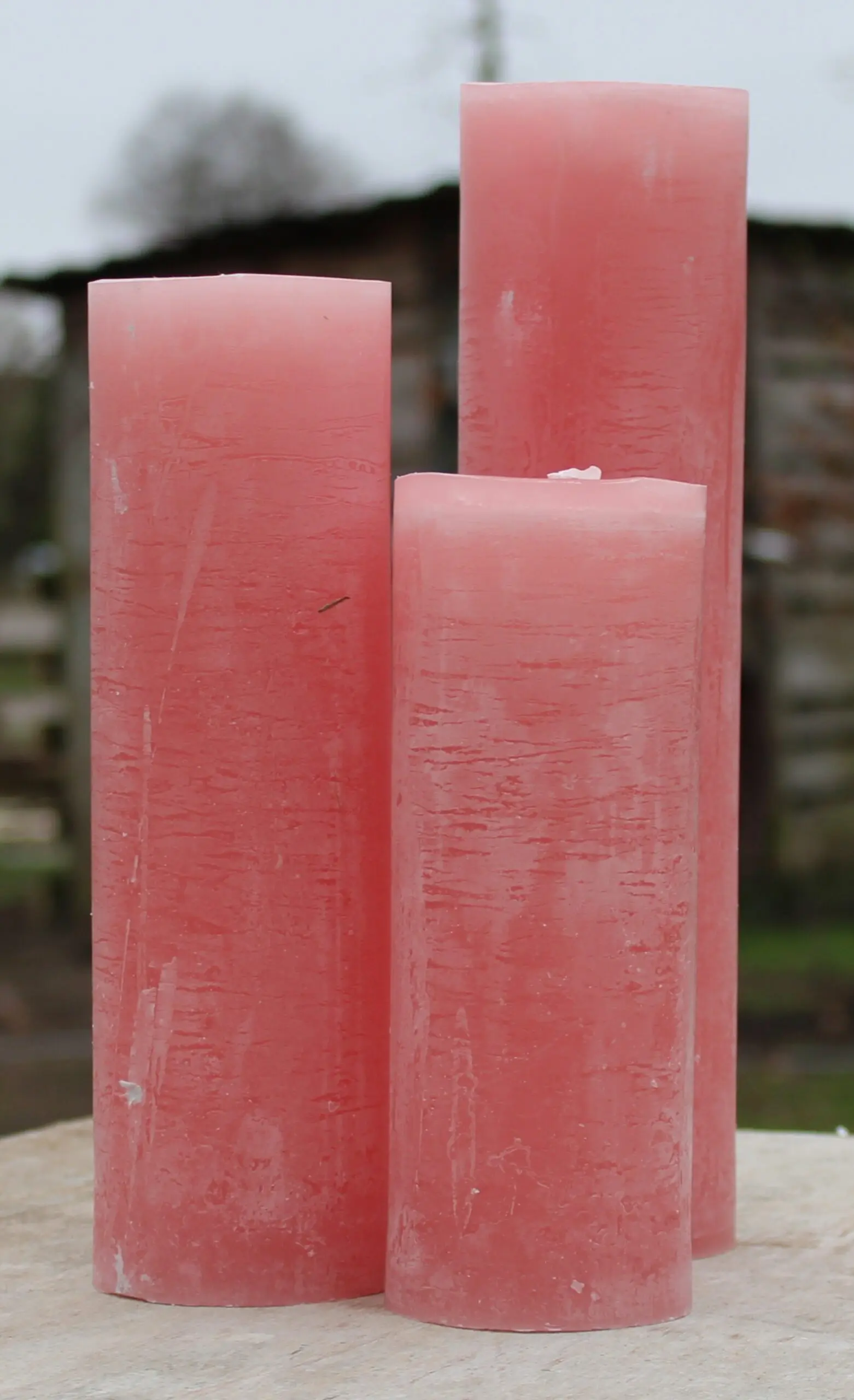 Pakket van 3 Maria Buytaert/Bika kaarsen in de kleur baksteen, een soort licht rood