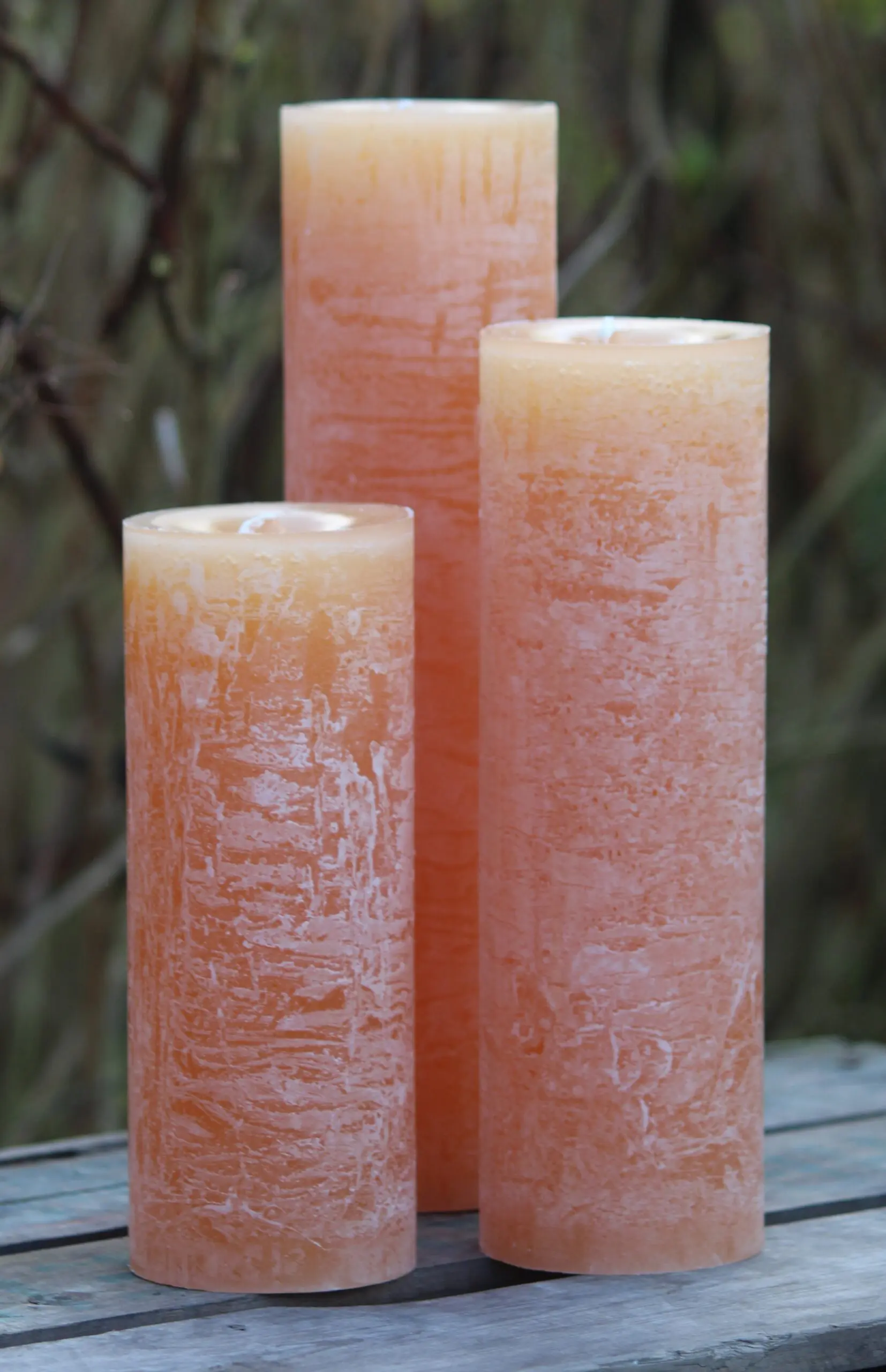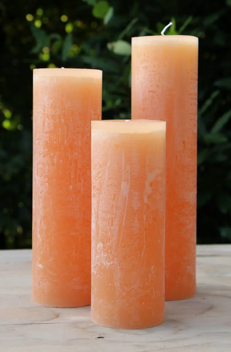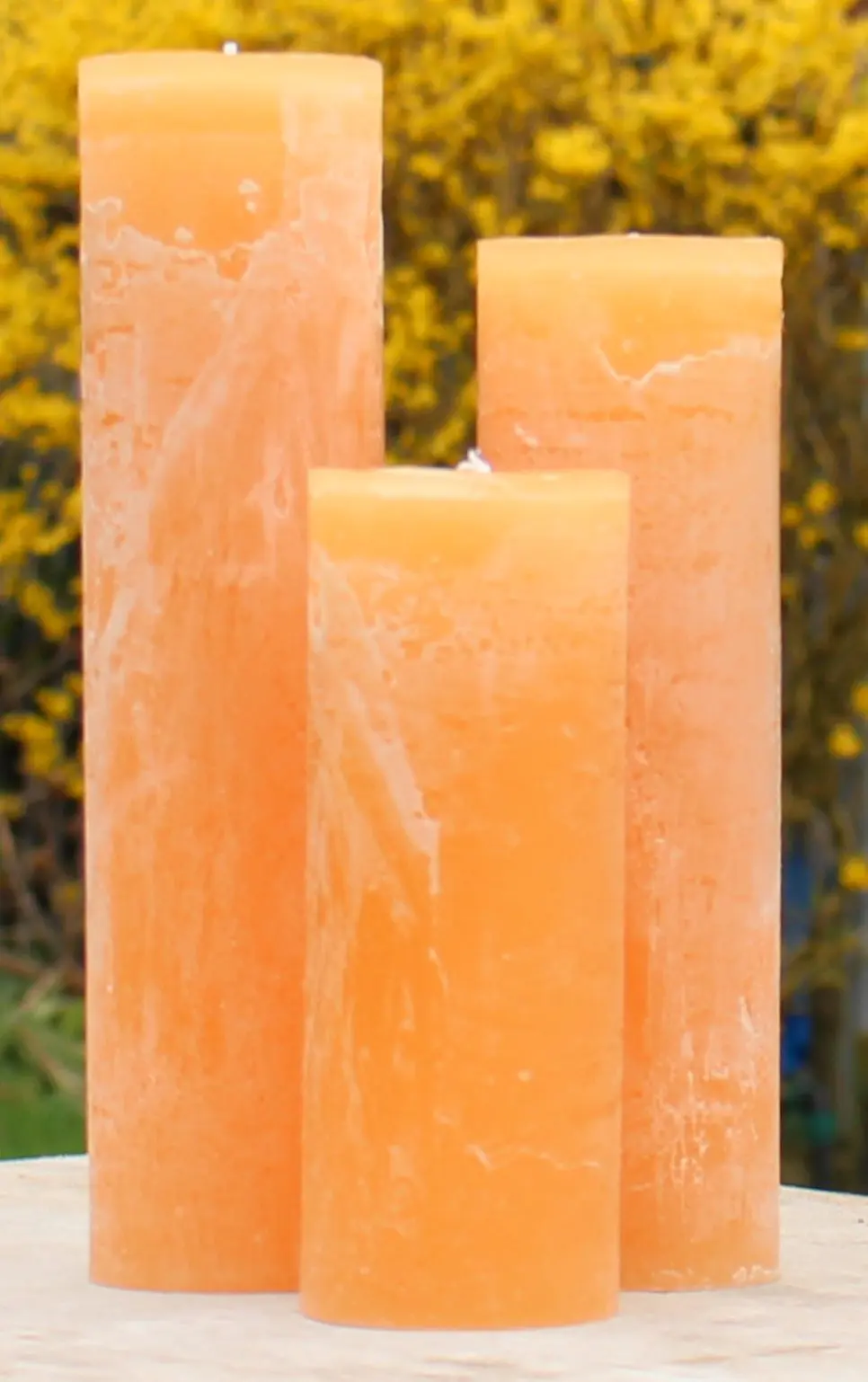 Pakket van 3 Maria Buytaert/Bika kaarsen in de kleur oranjebruin – licht oranje.