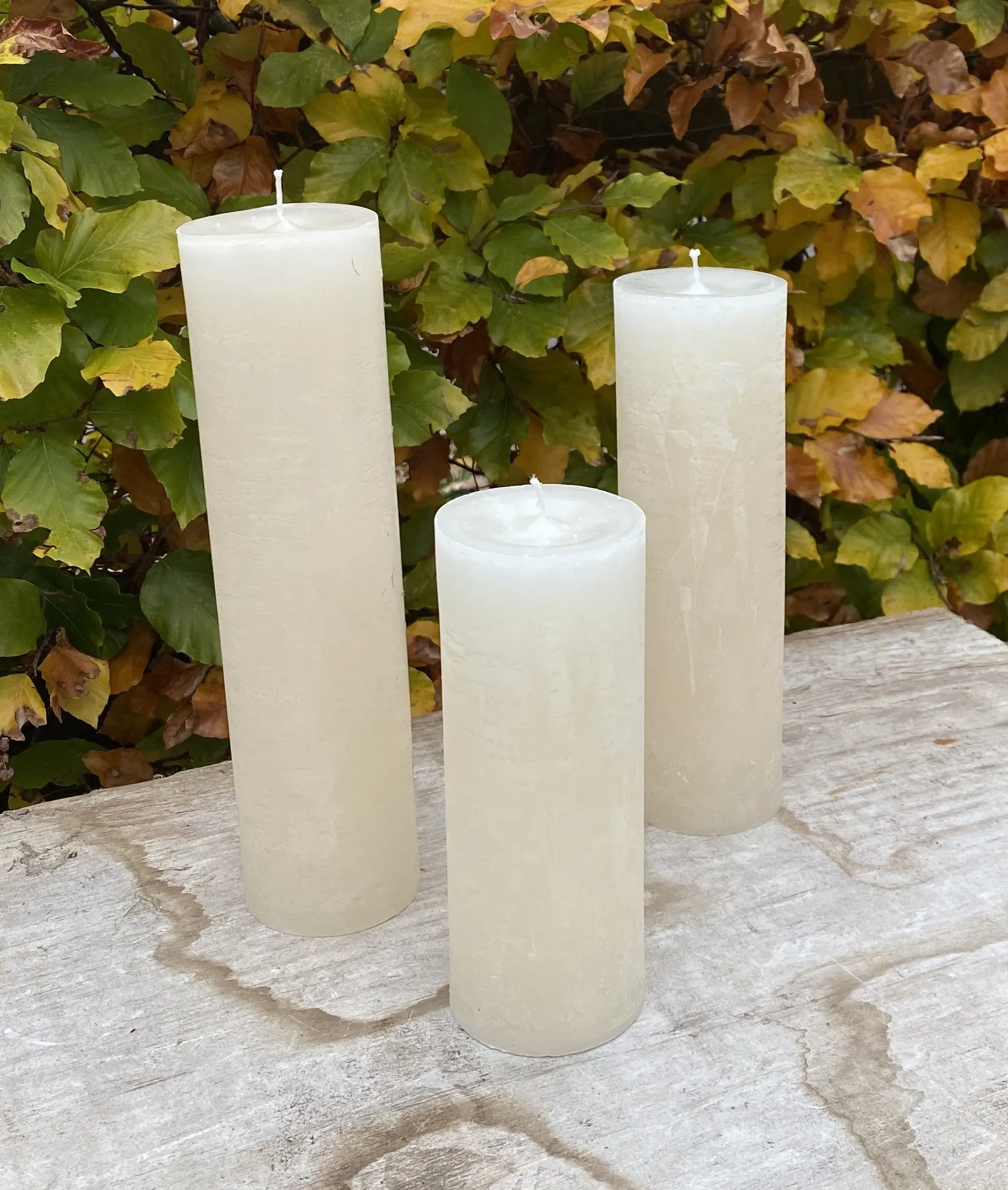 Pakket van 3 Bika/ Maria Buytaert kaarsen in de kleur gebroken wit. (lijkt ook op champagne kleur)