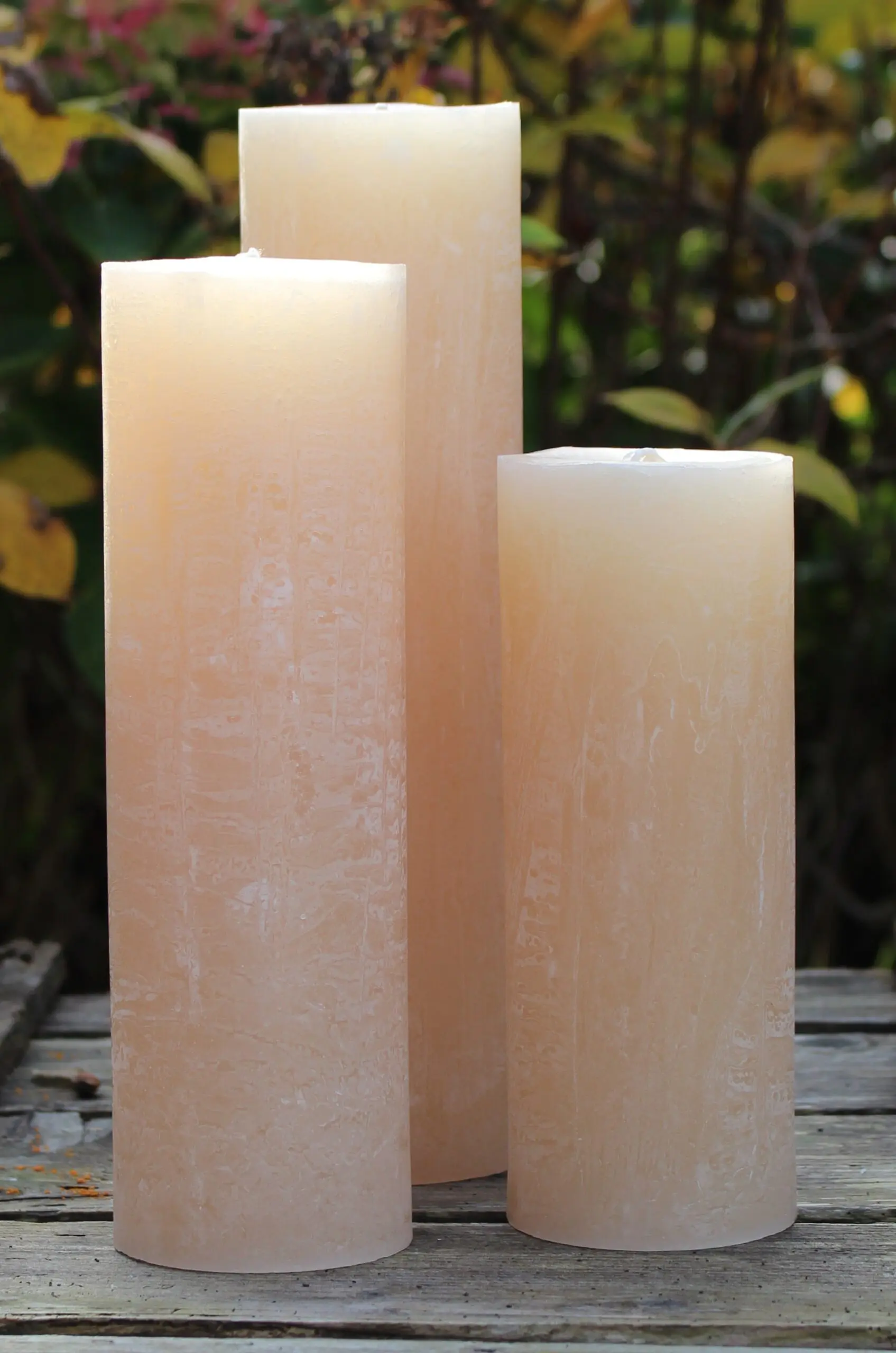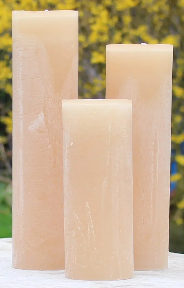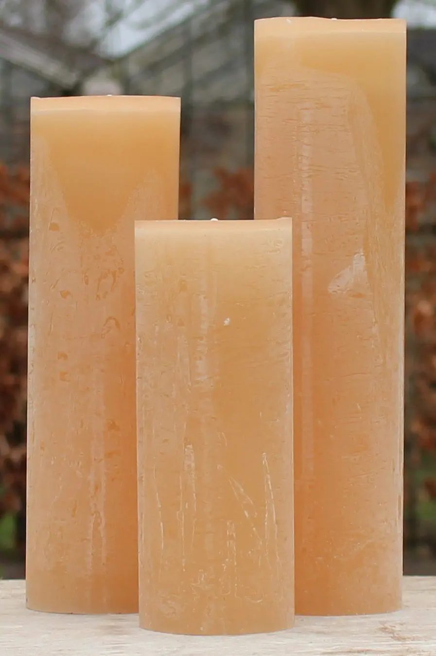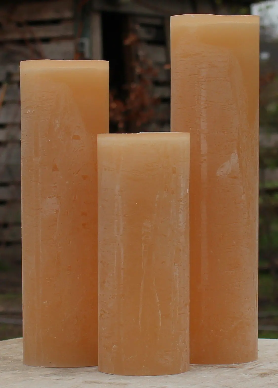 Pakket van 3 Maria Buytaert/Bika kaarsen in de kleur kaneel (glad), een soort geel/creme