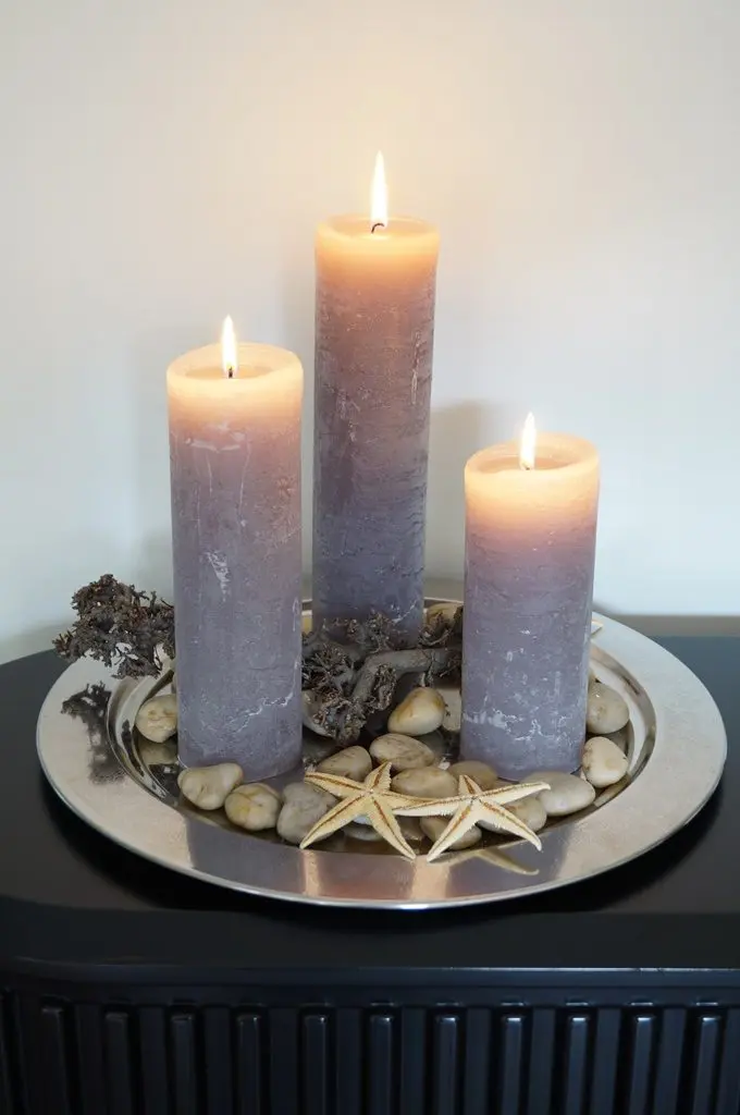 Pakket van 3 Bika kaarsen in de kleur kiezel, soort grijs