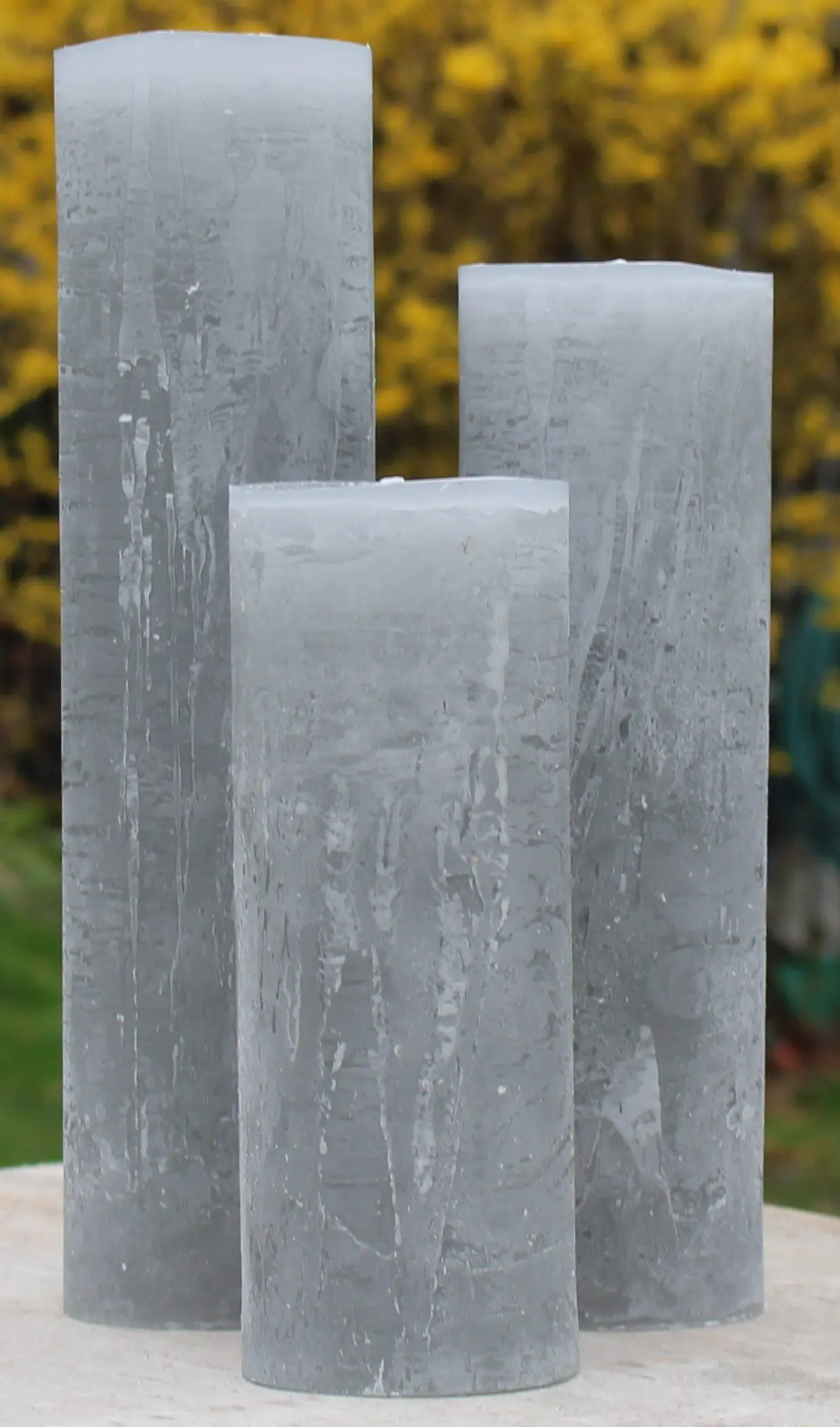 Het pakket bestaat uit een kaars van 17 cm, 22 cm en 27 cm. en een diameter van ongeveer 7 cm.