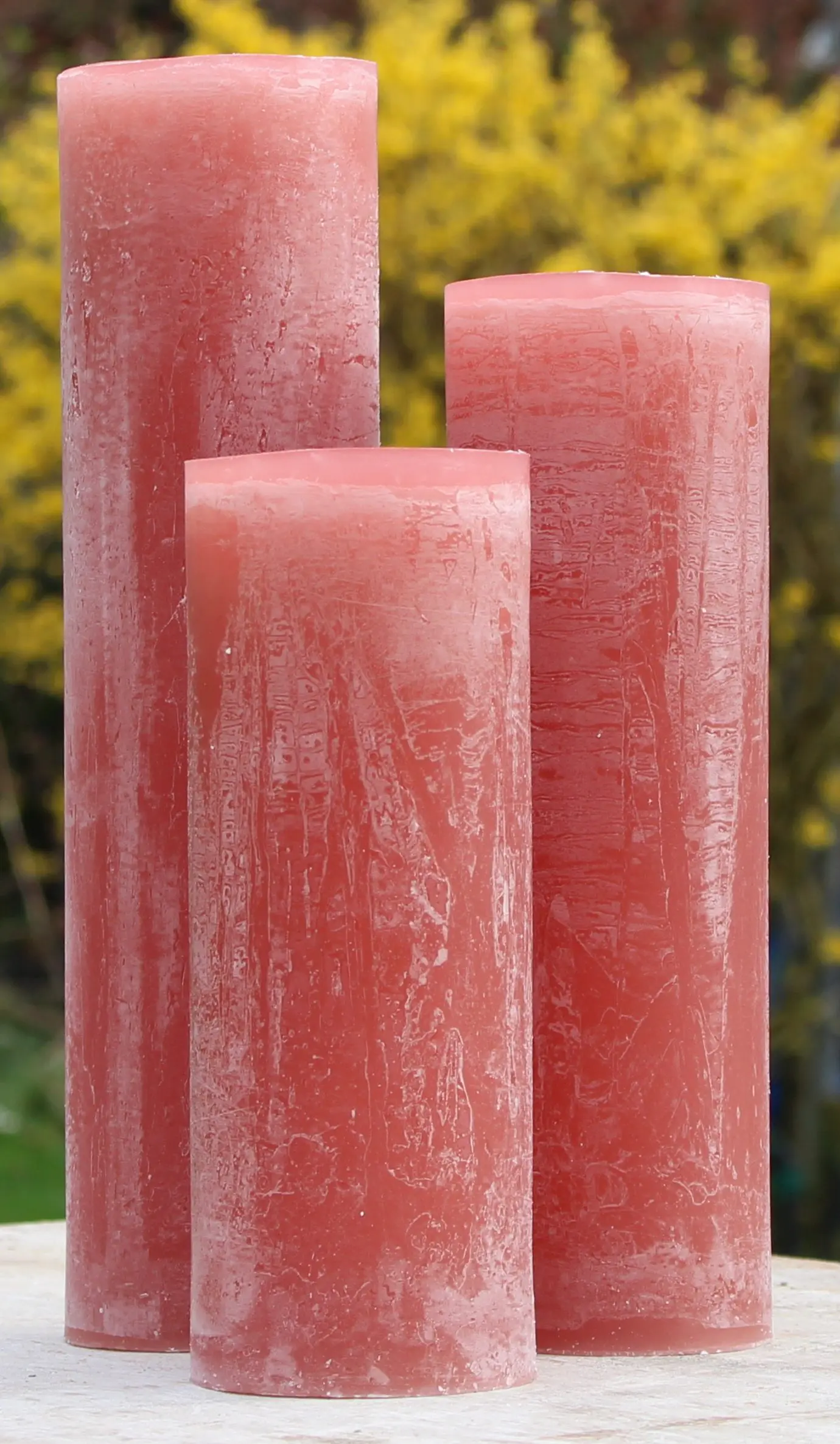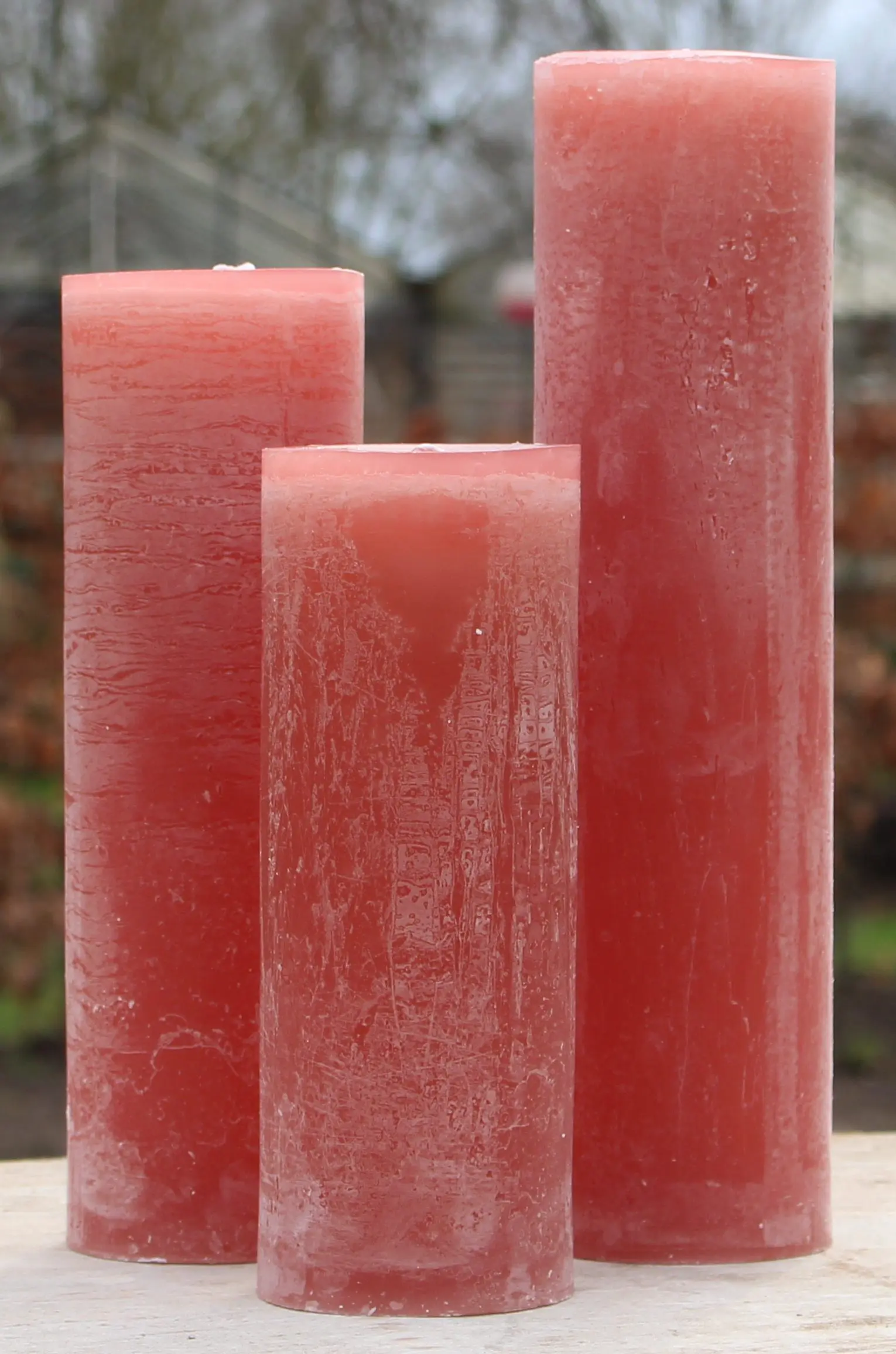 Pakket van 3 Bika kaarsen in de kleur Roest (soort rood-bruin)