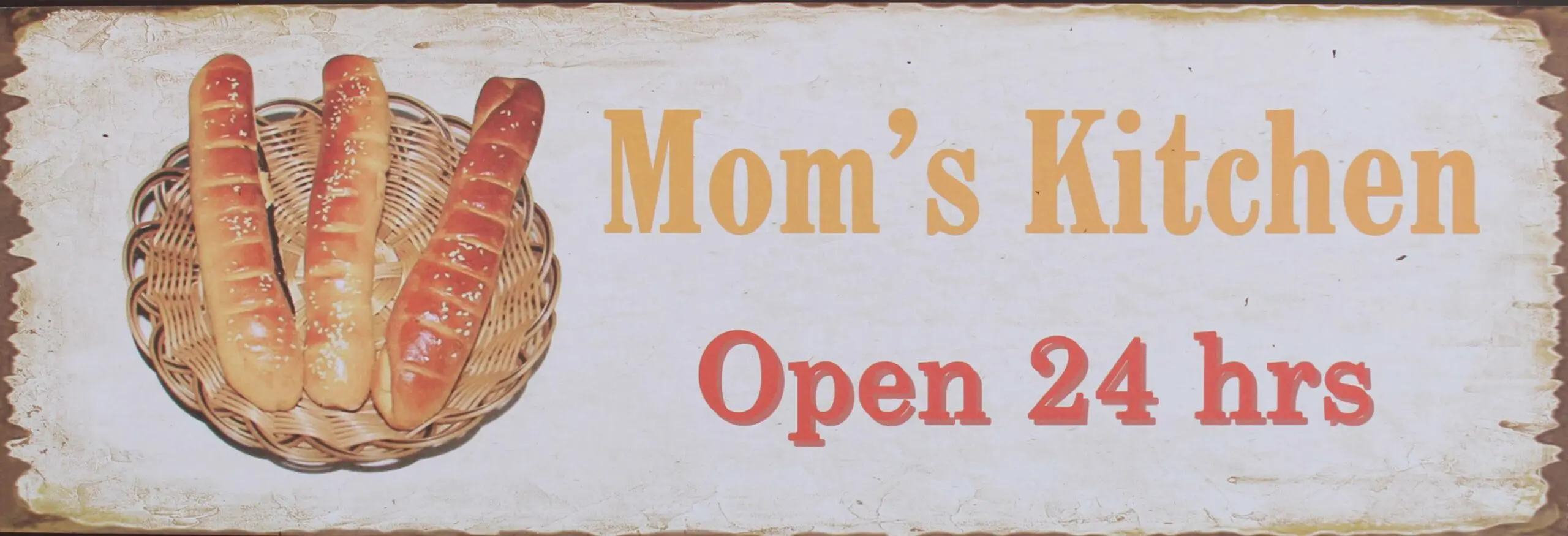 Tekstbord: “Mom’s Kitchen Open 24” TB245