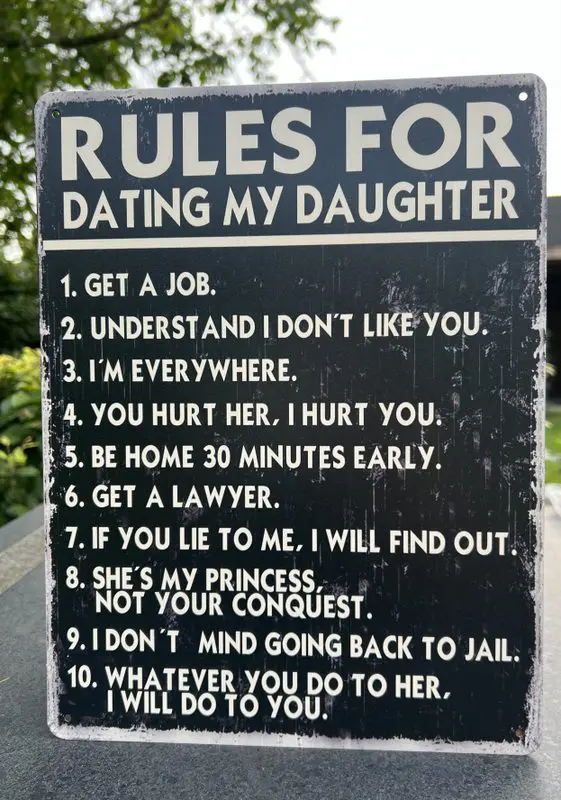 Metalen tekstbord: ” Rules for dating my daughter”