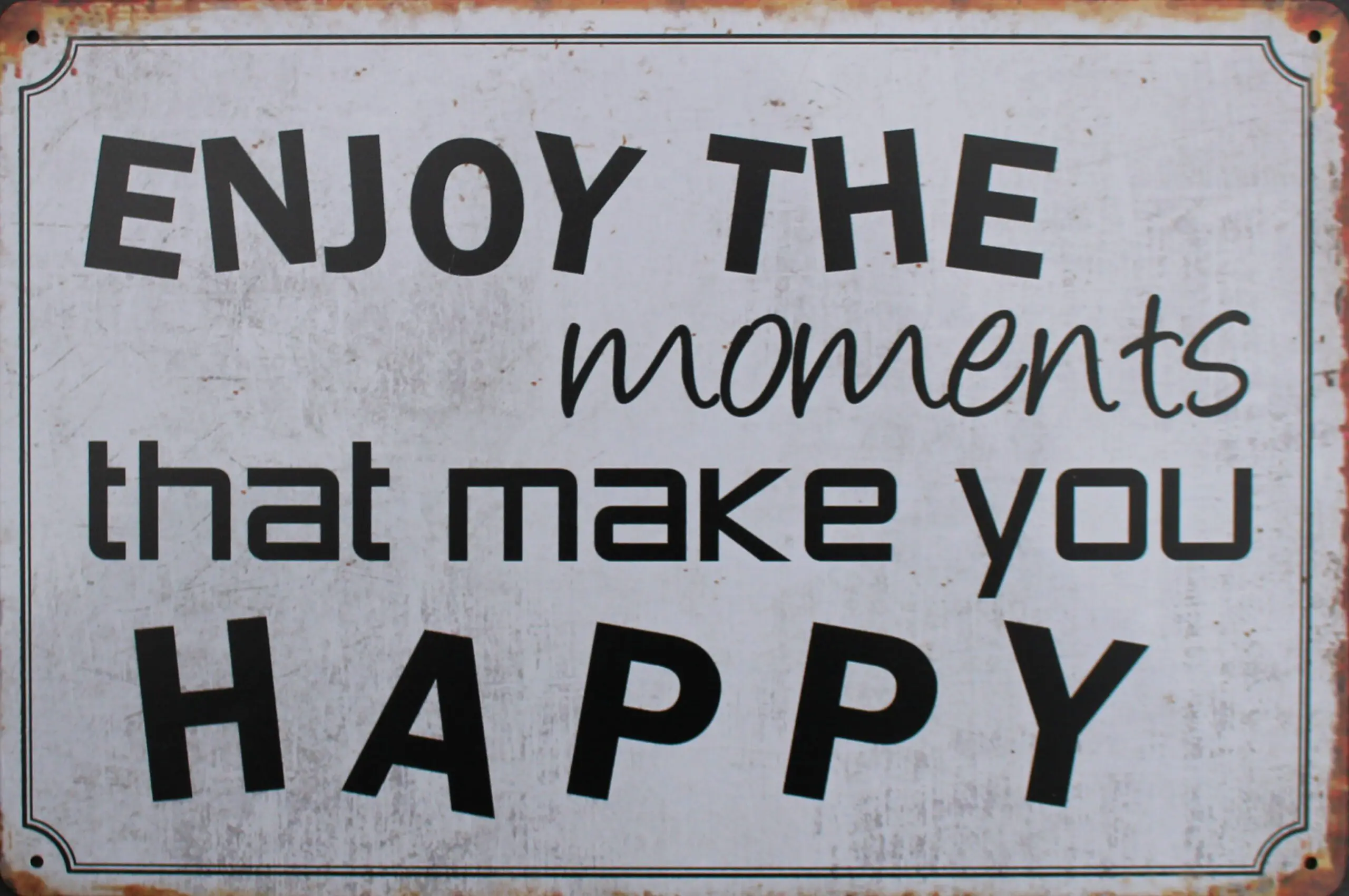 Metalen tekstbord: “Enjoy the moments that make you happy”
