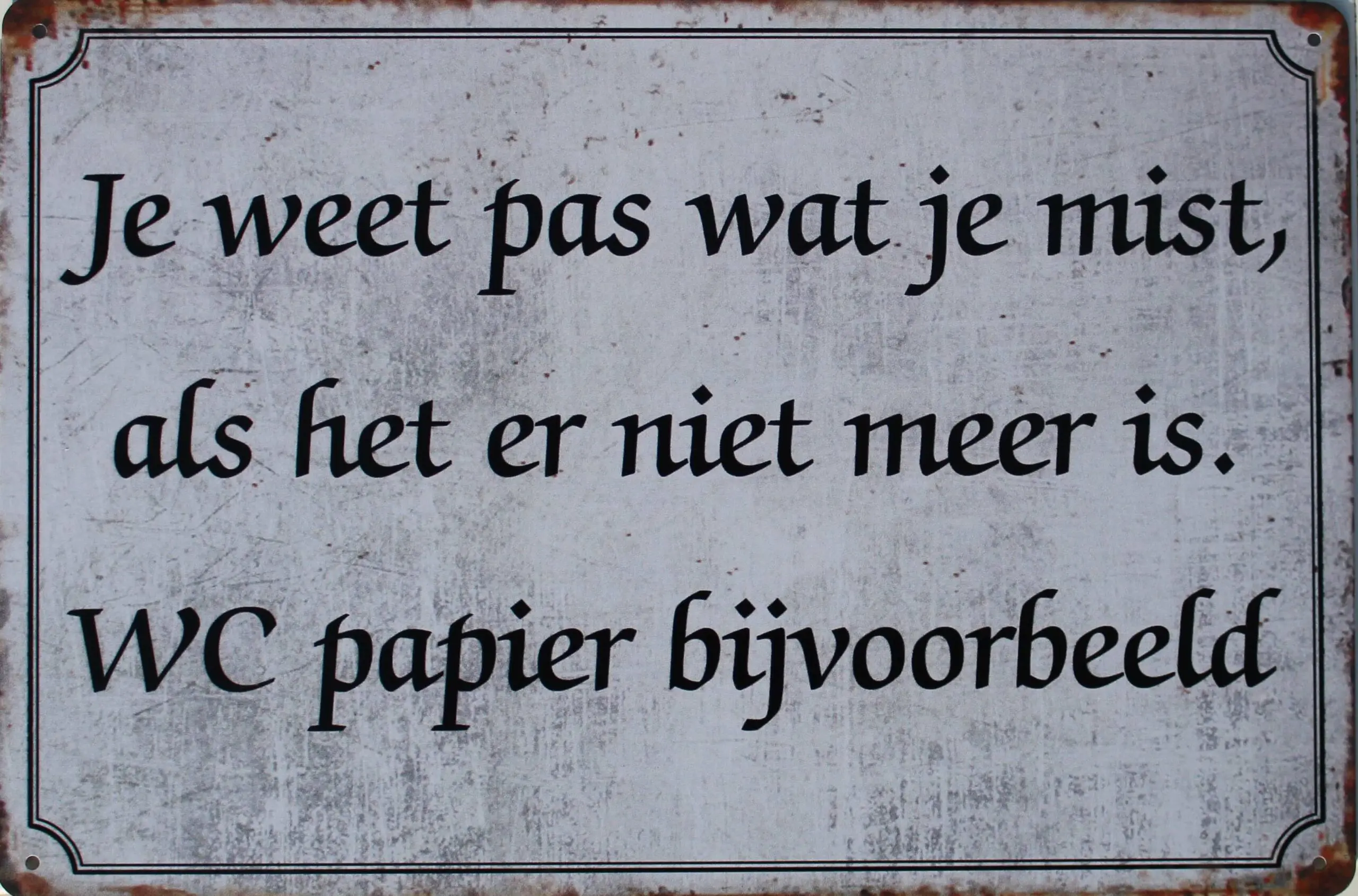 ” Je weet pas wat je mist als het er niet meer is, WC papier bijvoorbeeld”