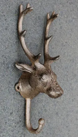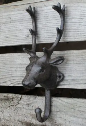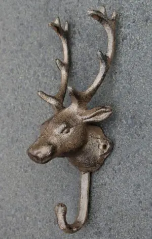 een wat grotere gietijzeren kapstokhaak hert donkerbruin