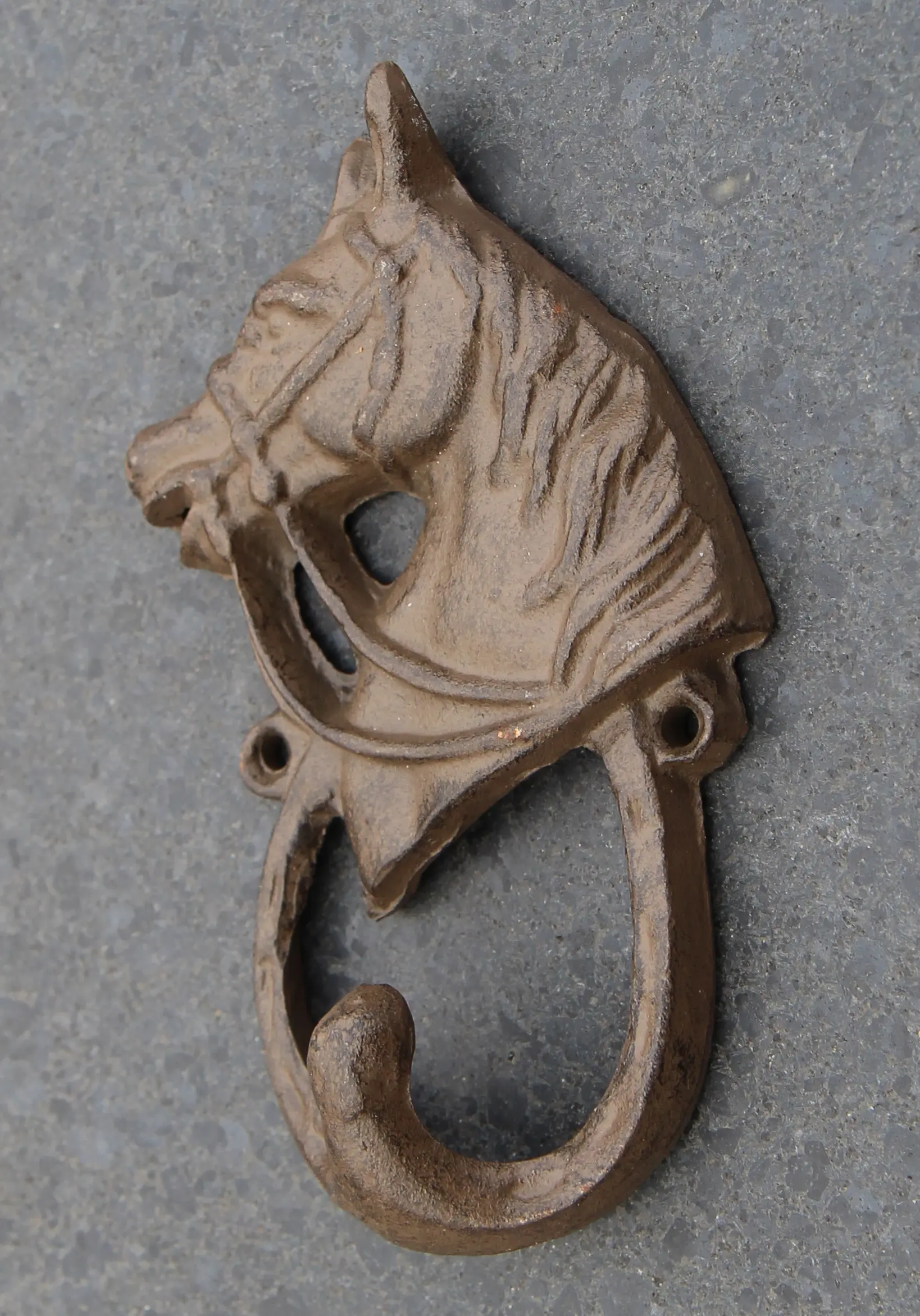Gietijzeren kapstokhaak met hoofd van een paard, pony.
