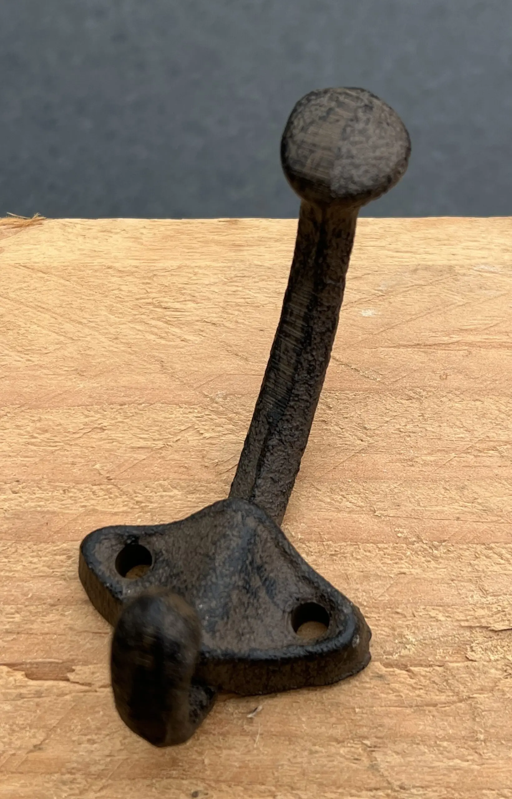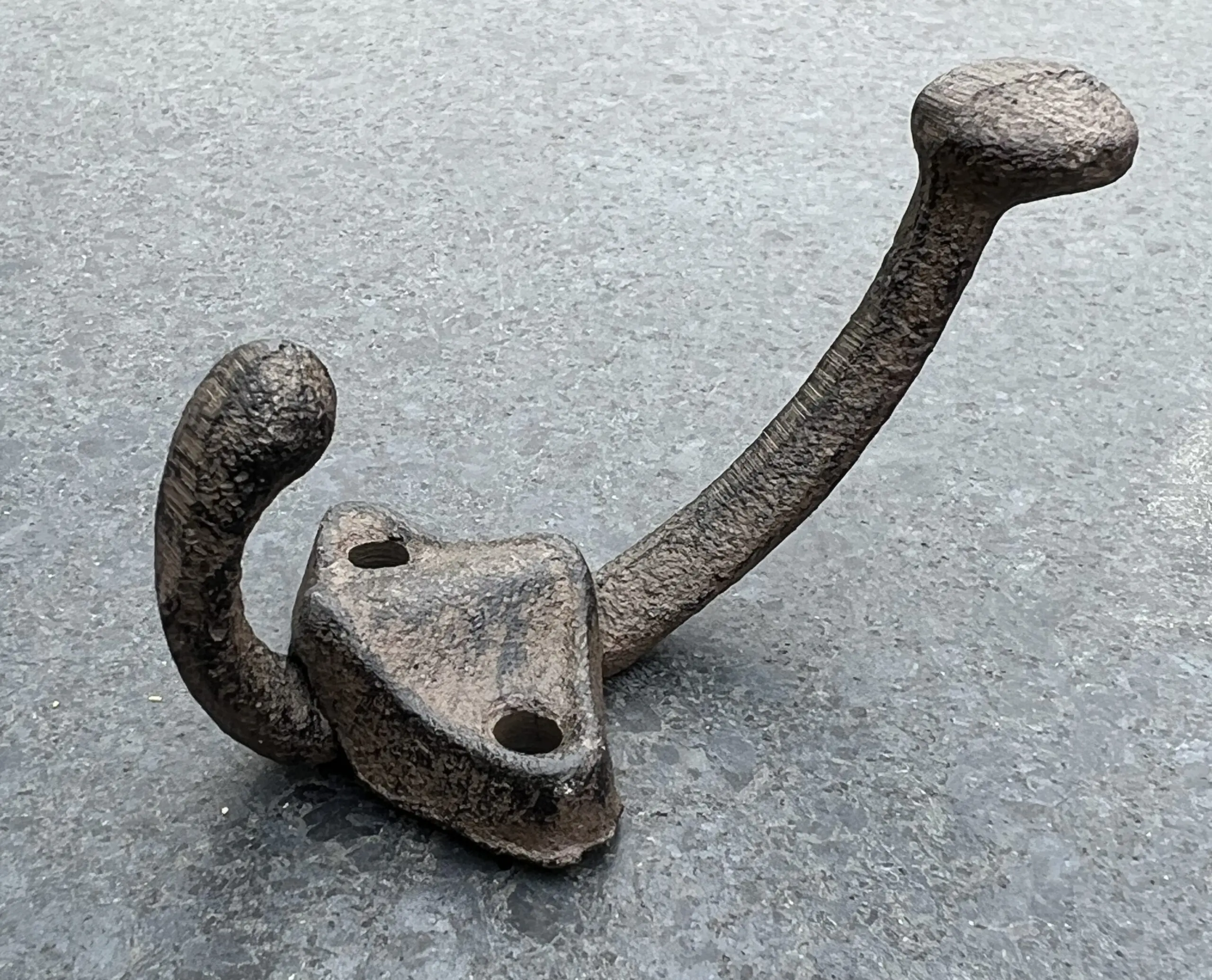 Stoere gietijzeren kapstokhaak met twee haken.