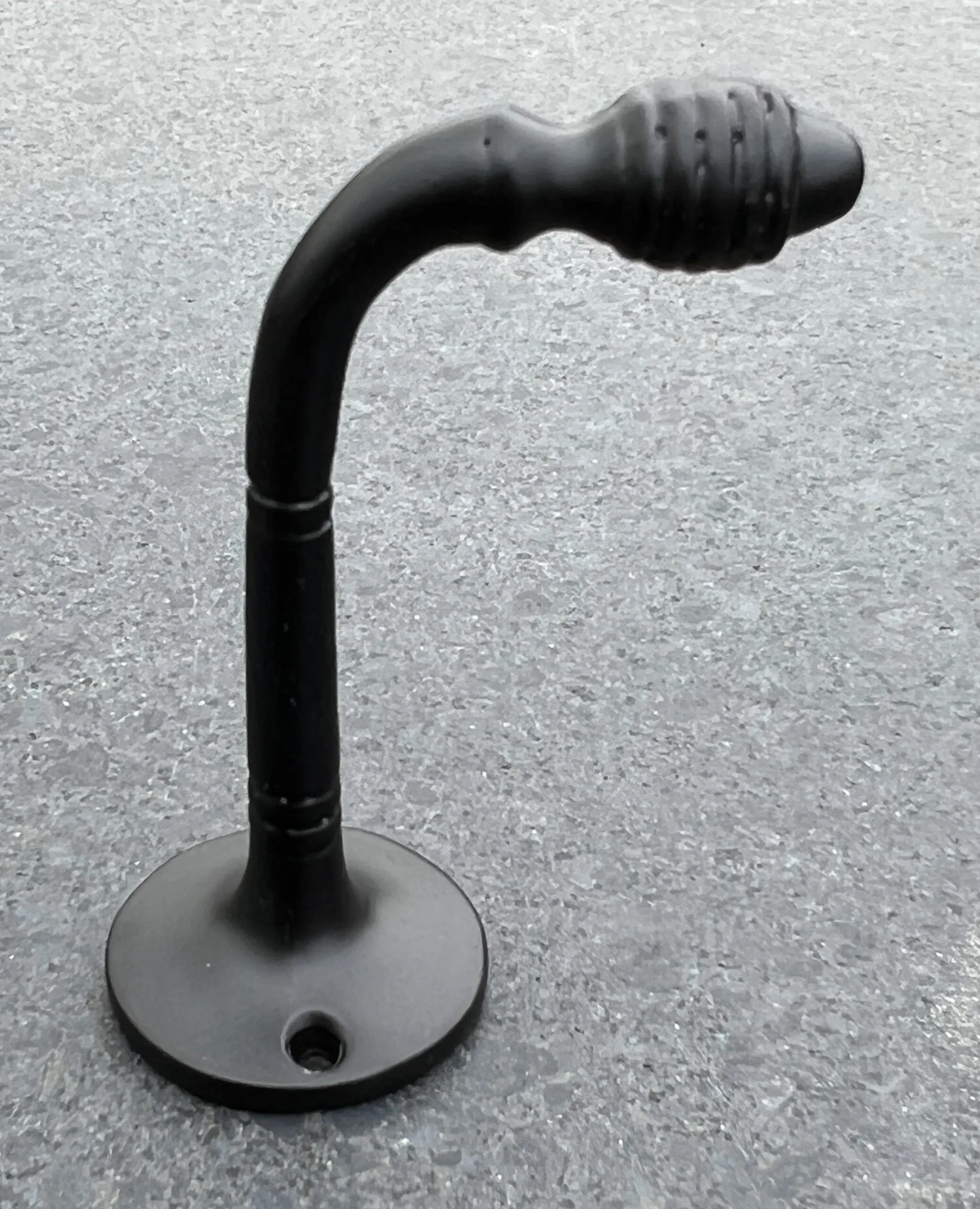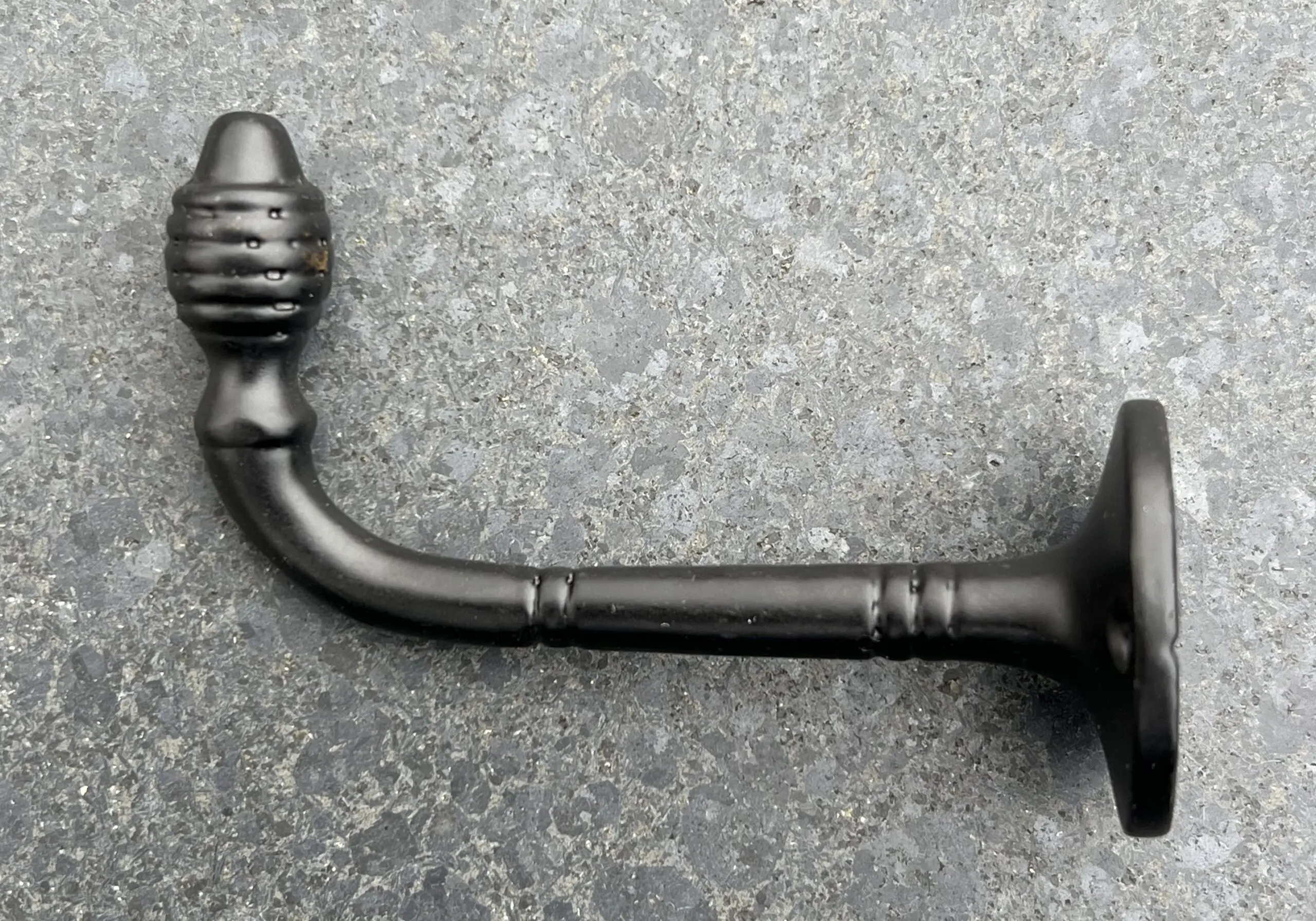 Zwarte gietijzeren kapstokhaak met langere haak.