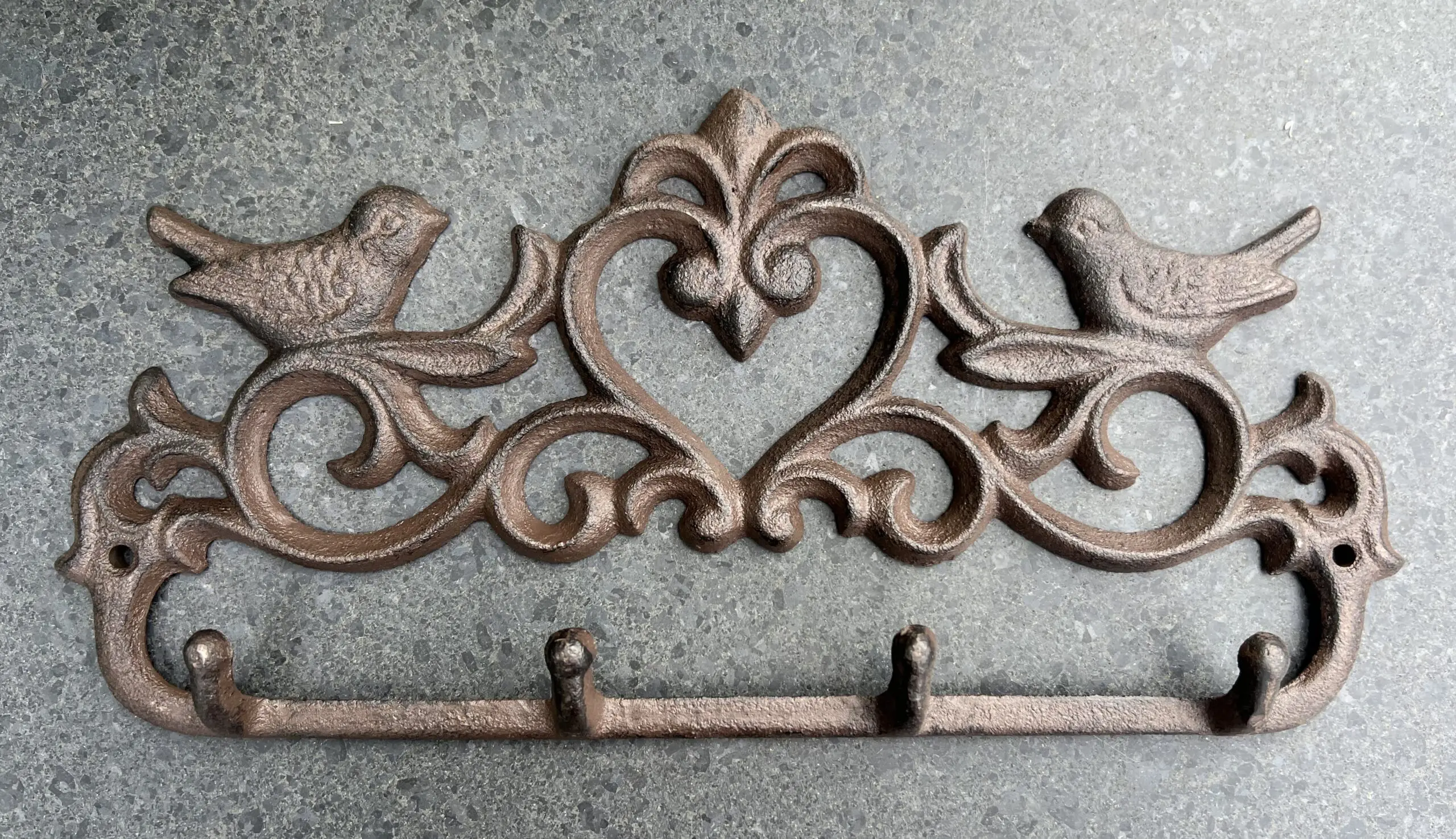Kapstokhaak hart met vogels, 4 haken, gietijzer KH1217