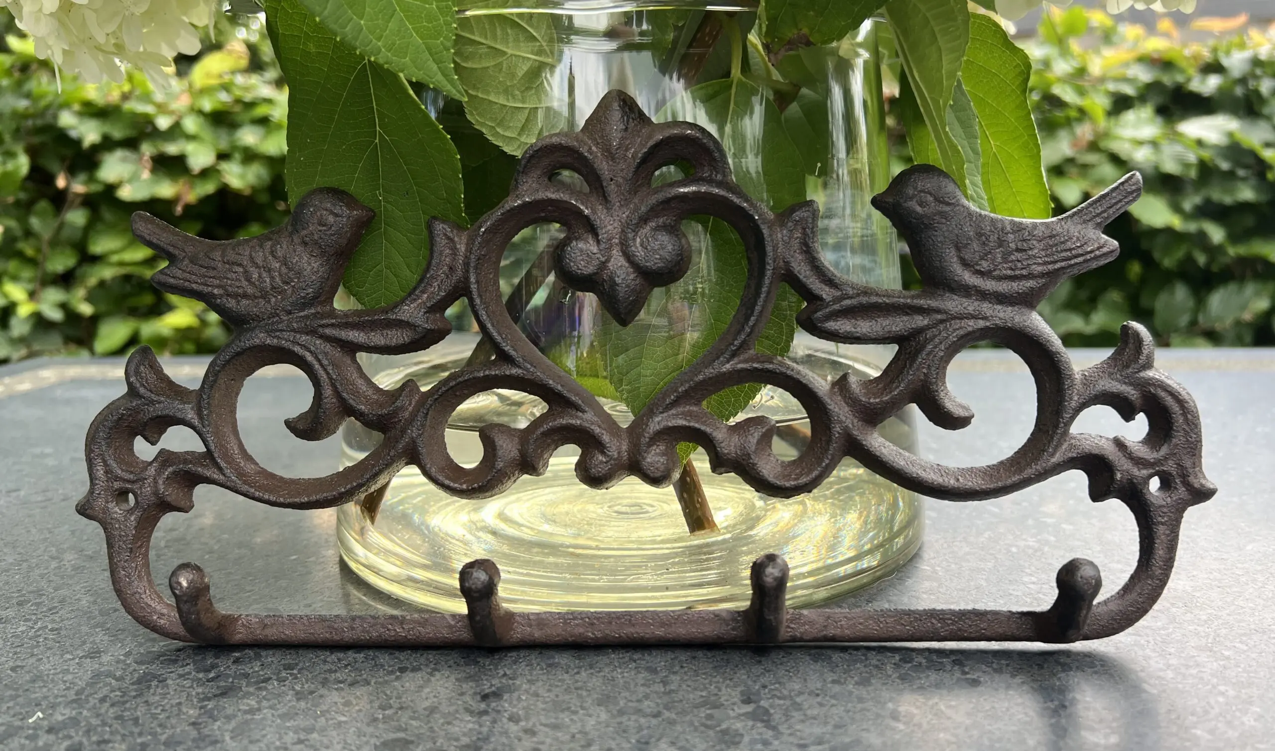 gietijzeren kapstok met 2 vogels en 4 haken bruin