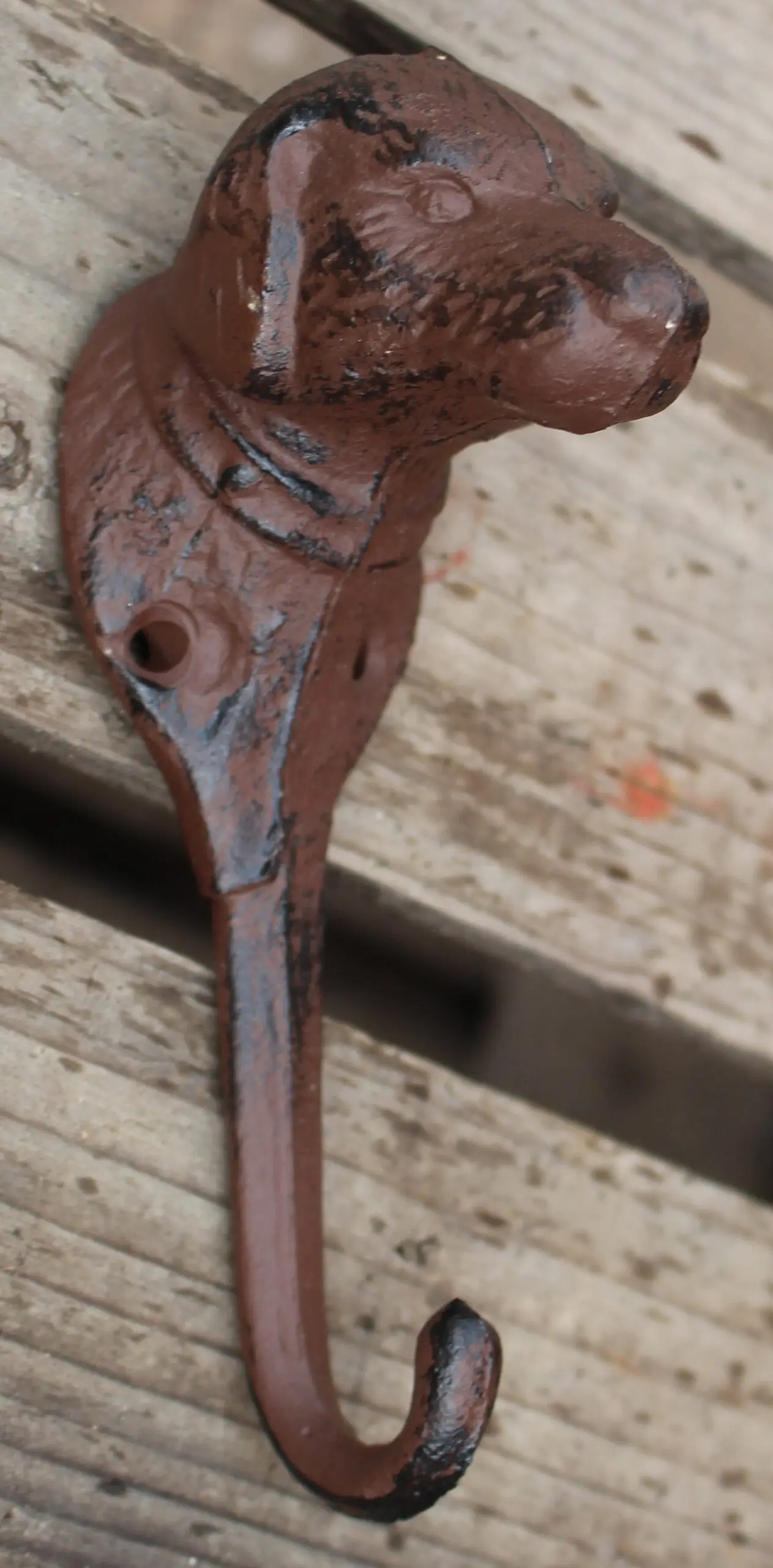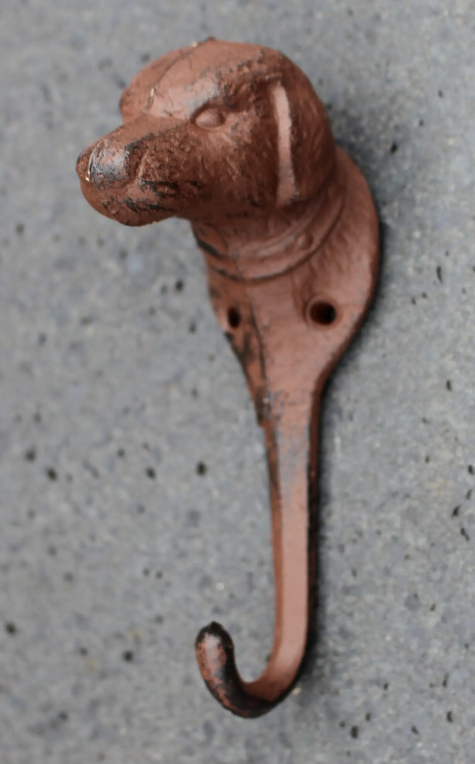 hietijzeren kapstokhaak met de kop van een hond donkerbruin