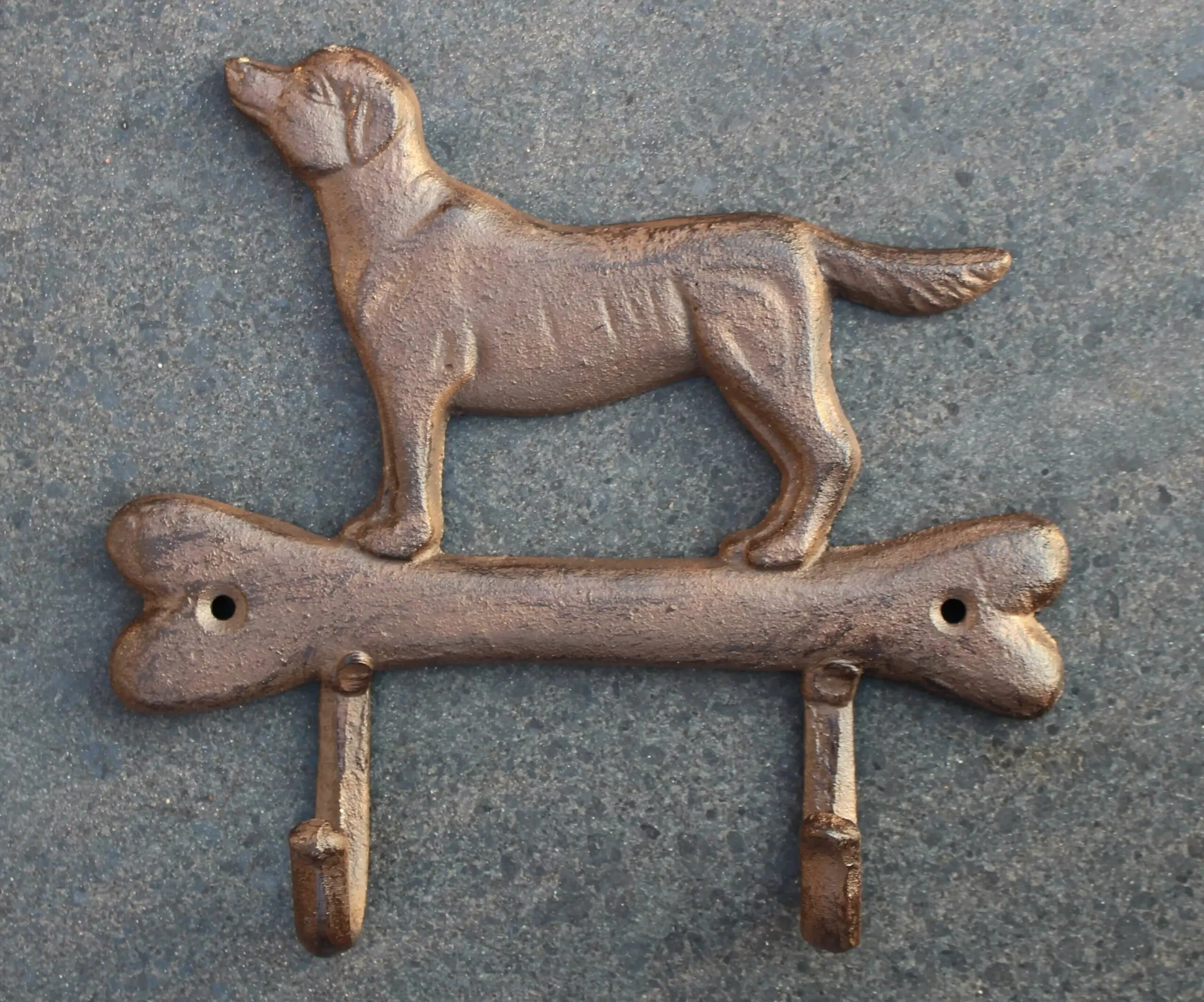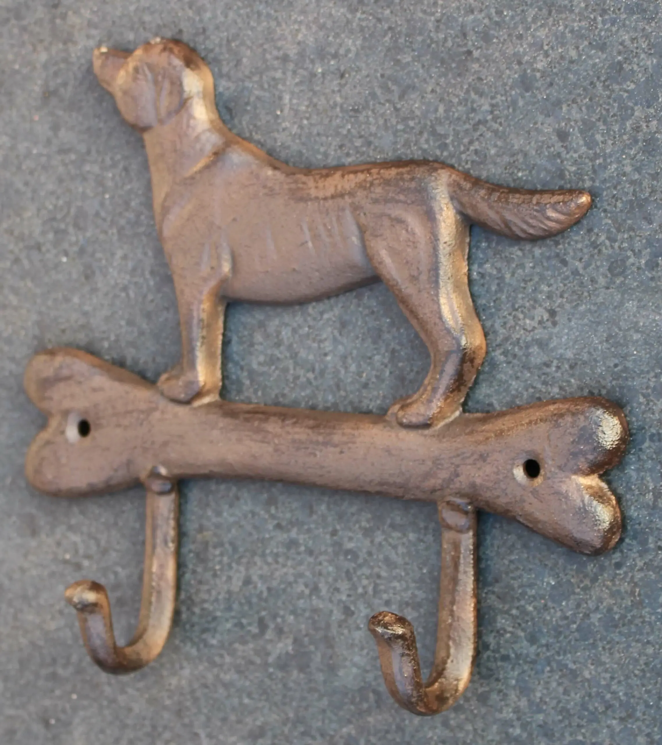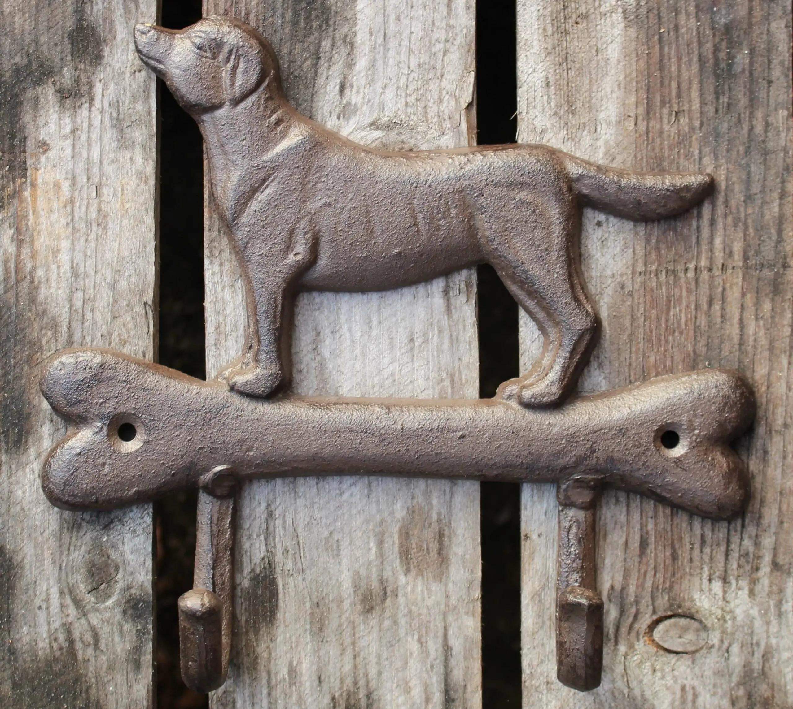 Kapstokhaak Hond met Kluif, 2 Haken, Gietijzer LH231