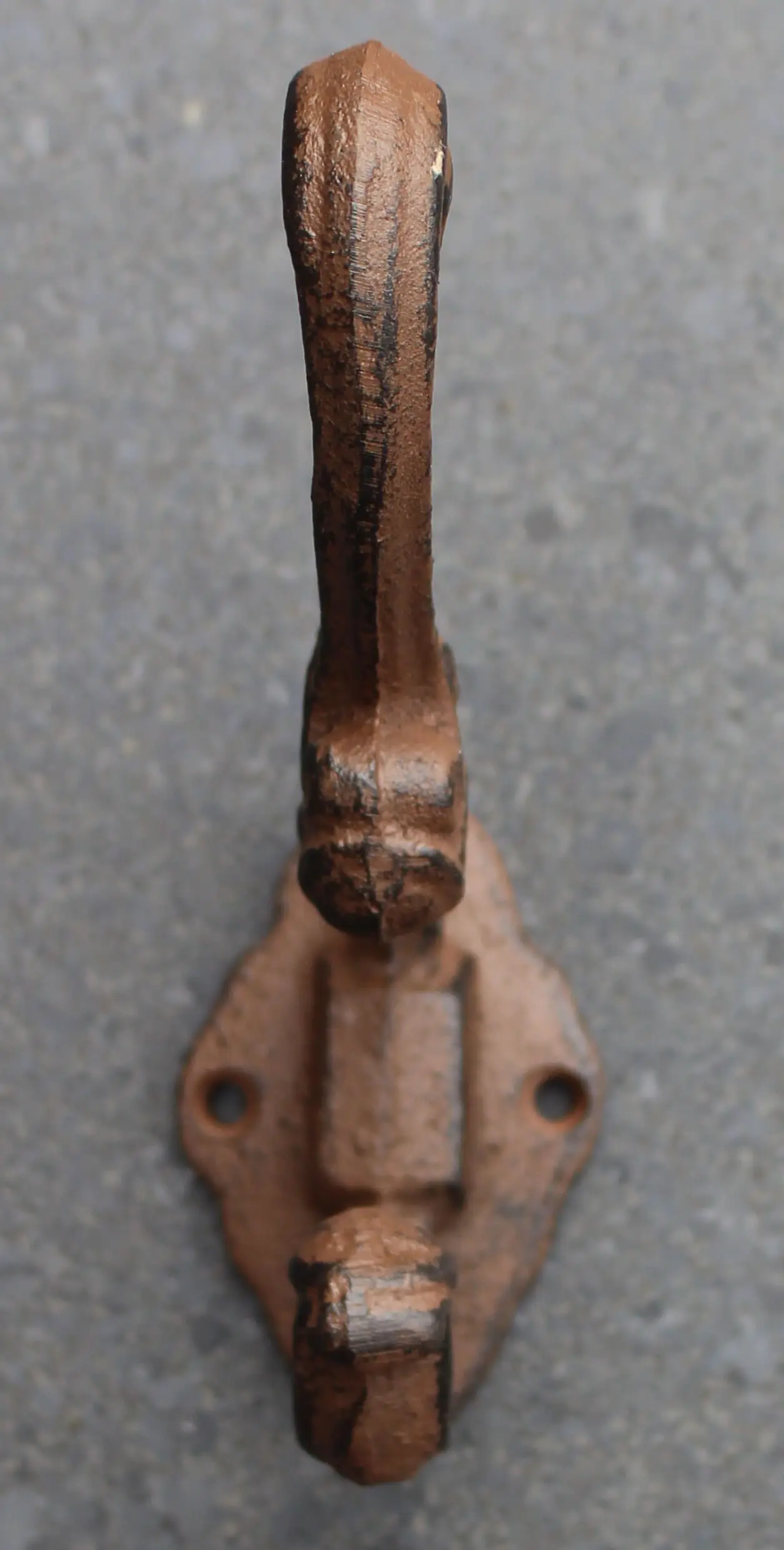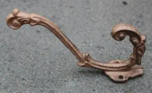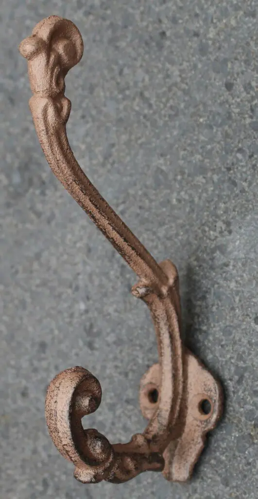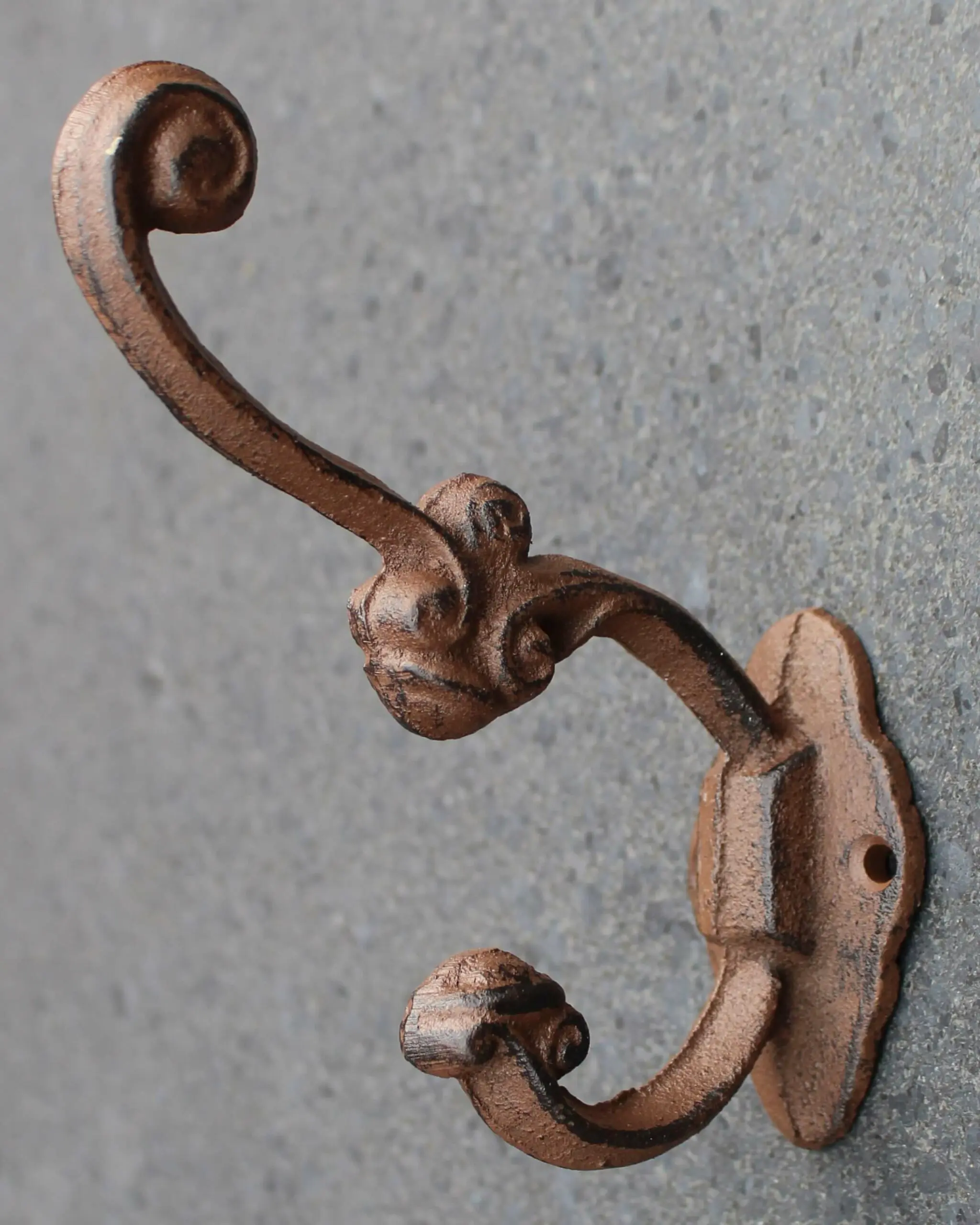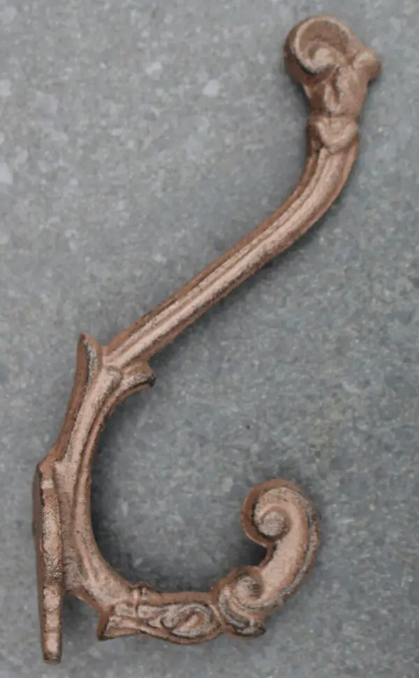 Gietijzeren klassieke kapstokhaak met sierlijke krullen.