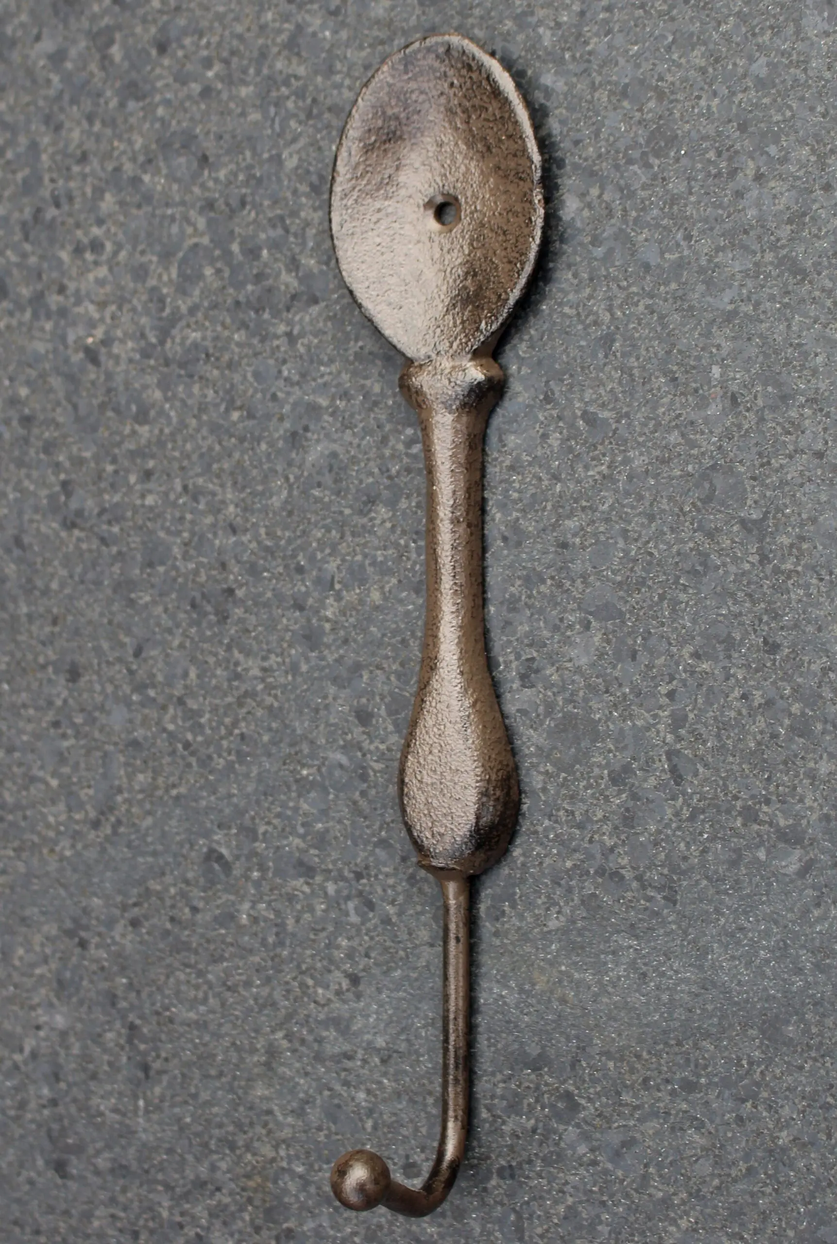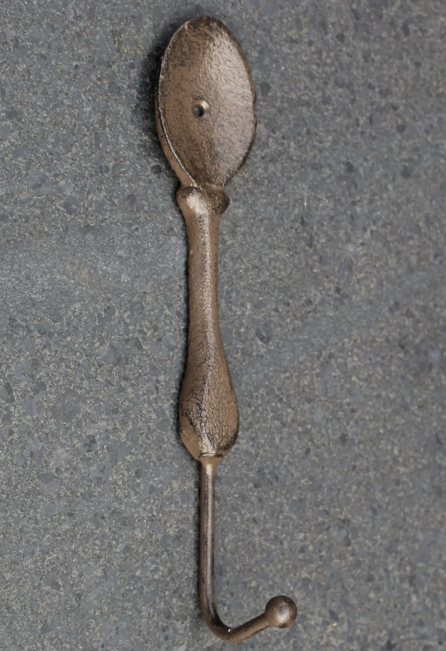 Een robuuste gietijzeren kapstokhaak model lepel.