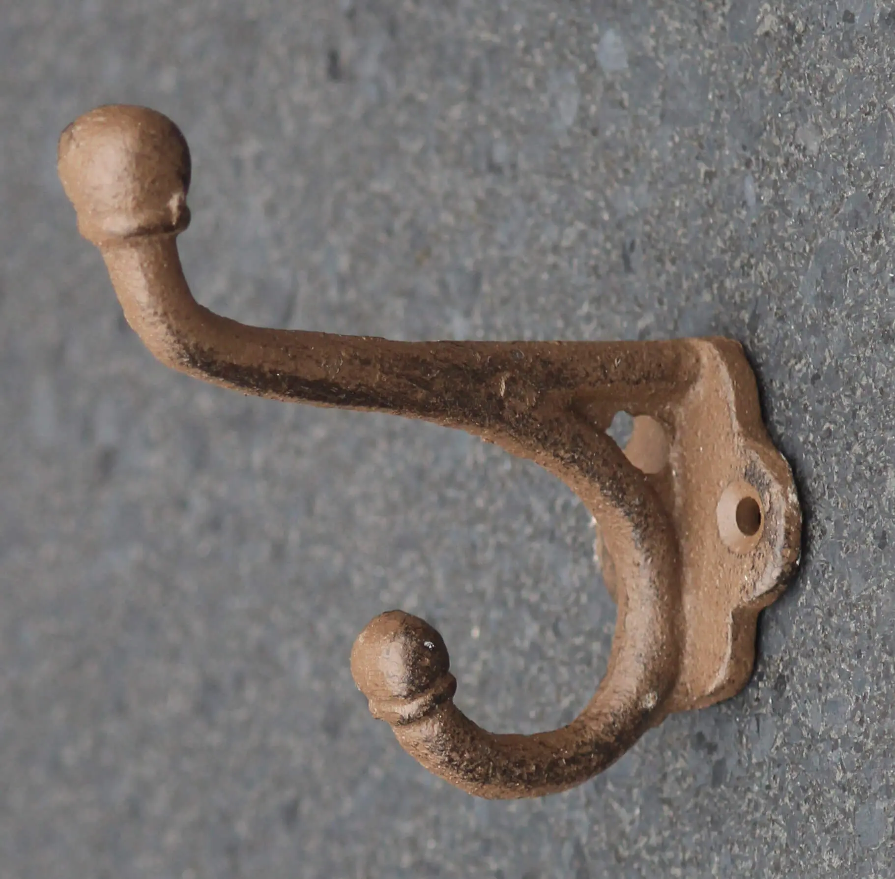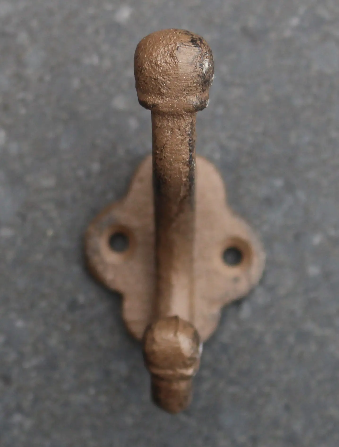 Een middelgrote gietijzeren kapstokhaak.