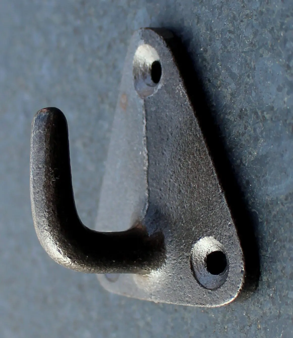 Een antraciet kleurige gietijzer kapstokhaakje model Pyramide.