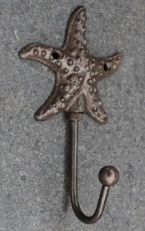De ruime haak zit met een schroefje in de zeester gedraaid.