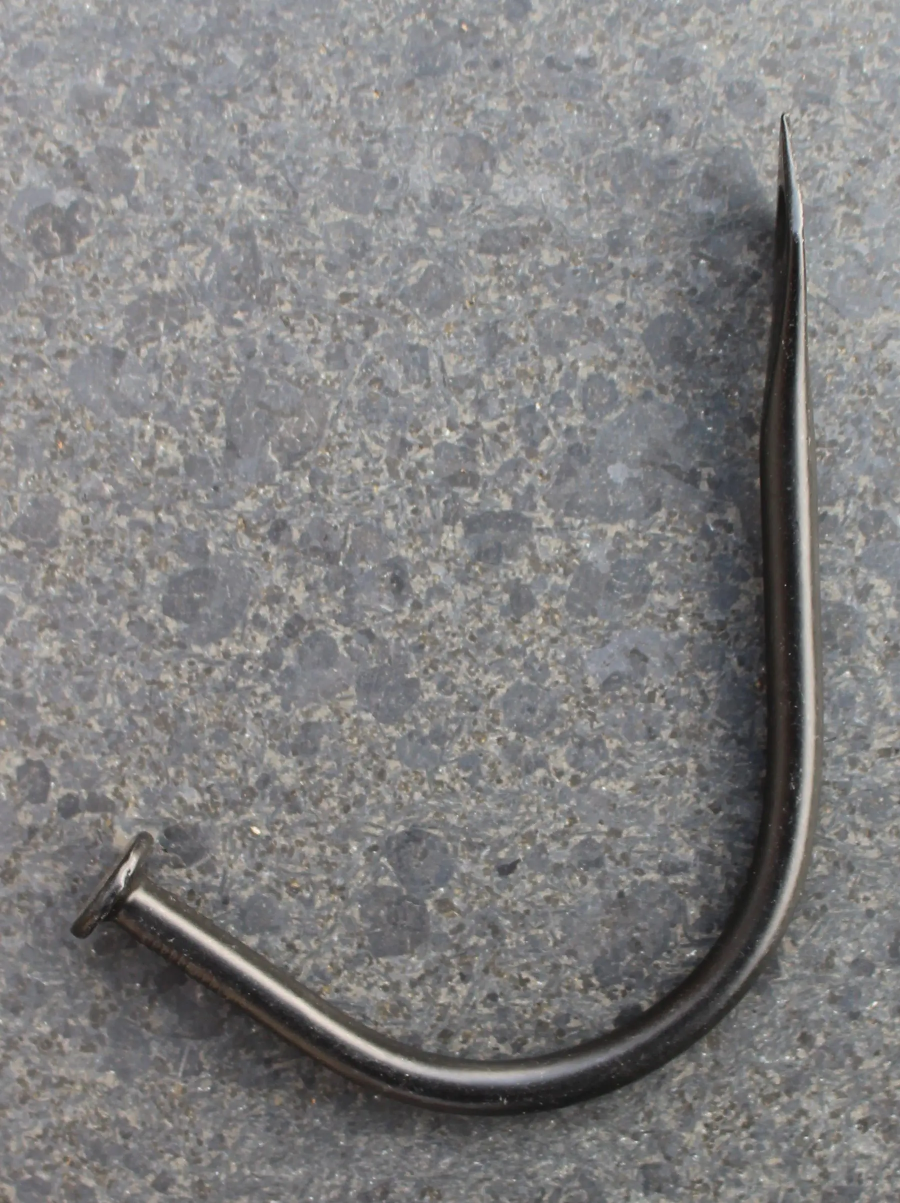 Het uiteinde lijkt op de kop van een spijker en het geheel op een soort vishaak.