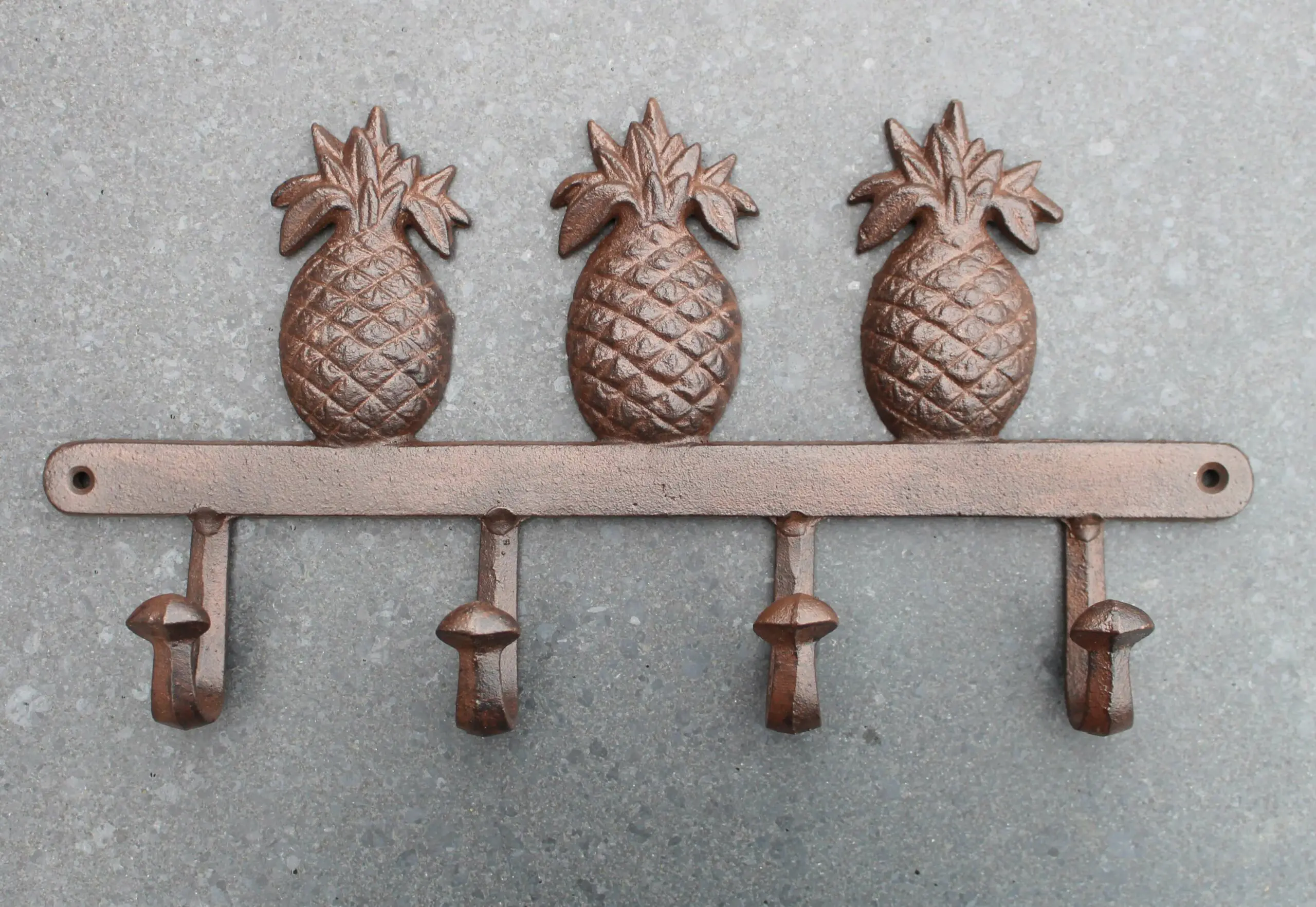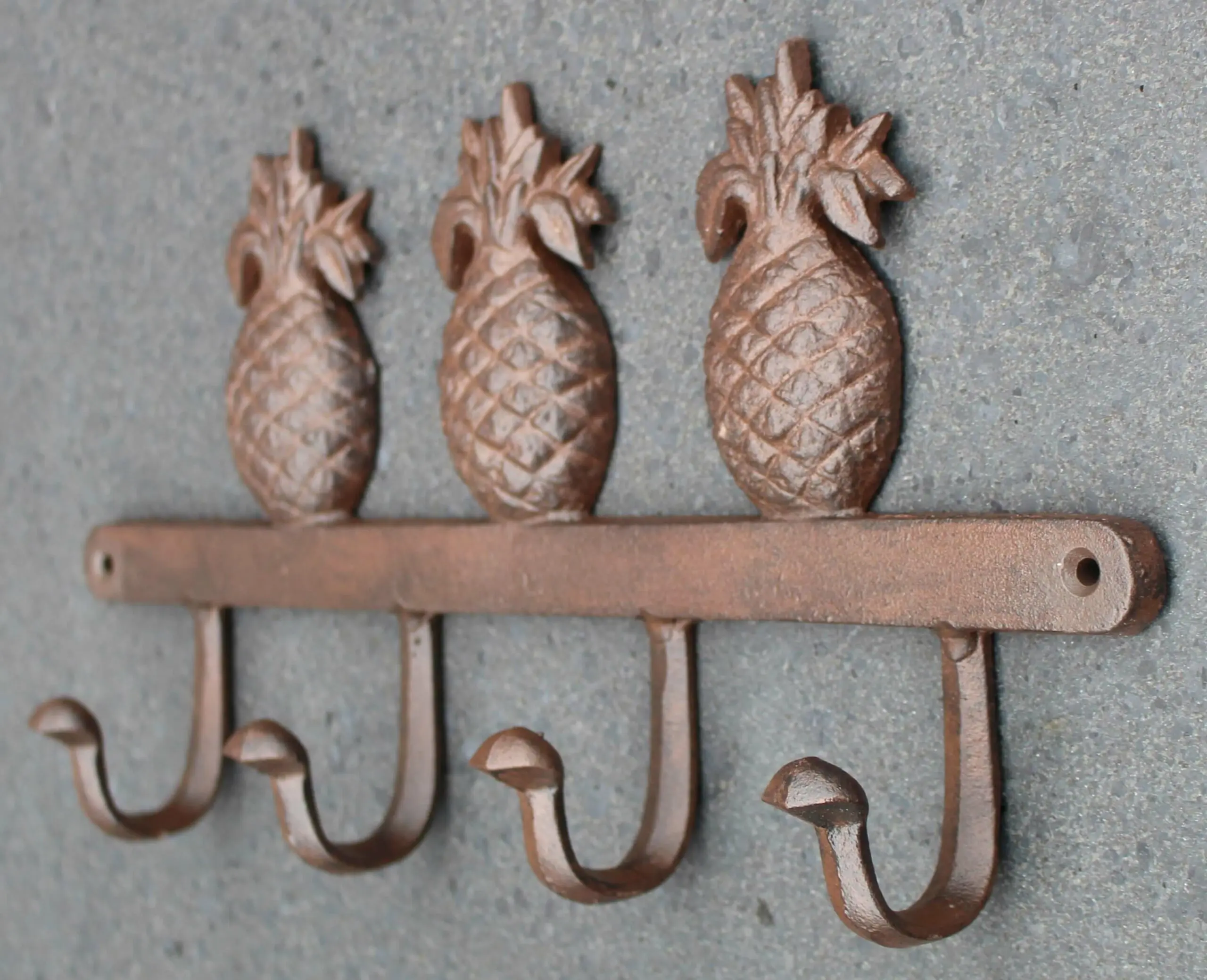 Mooie gietijzeren kapstok met 3 ananassen en 4 haken.