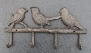 Gietijzeren kapstokhaak met 2 vogels en minstens 4 haken.