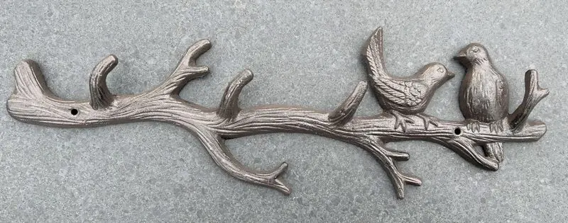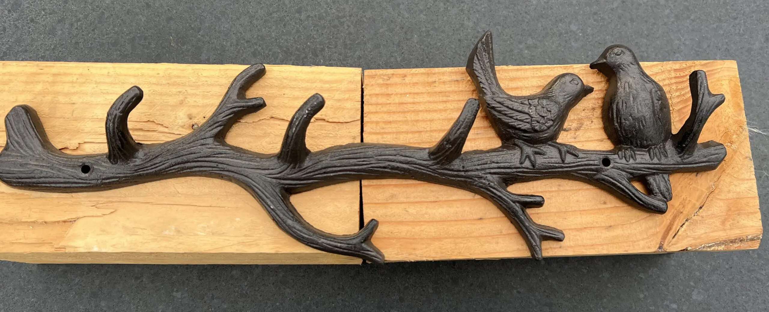 gietijzeren kapstok tak met 2 vogeltjes en 4 haken