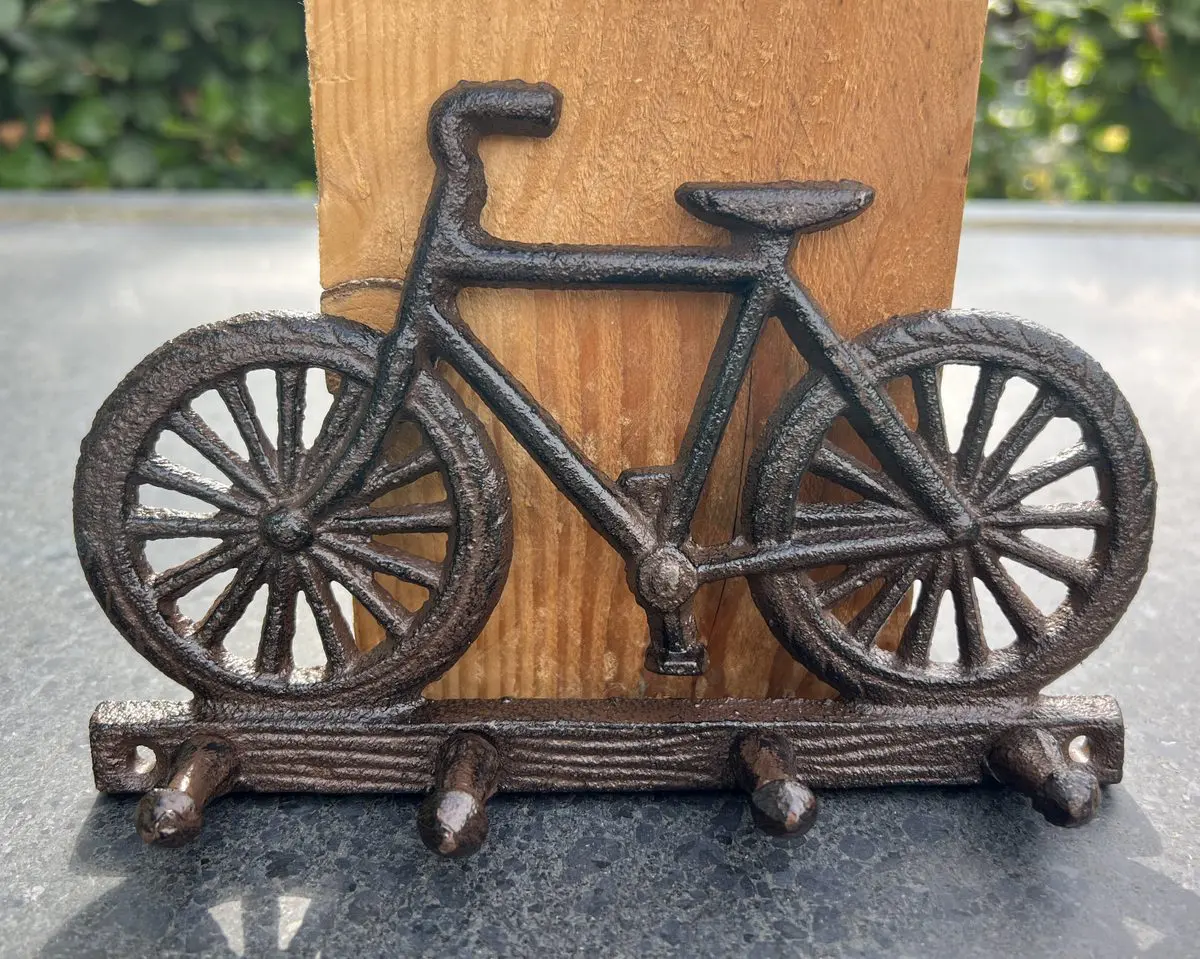 grappige gietijzeren kapstok fiets met 4 haken donkerbruin