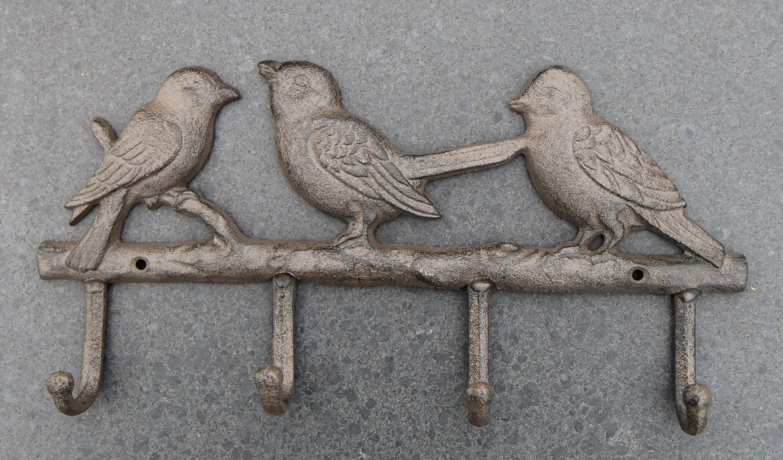 Gietijzeren kapstokhaak vogels met 4 ruime haken.