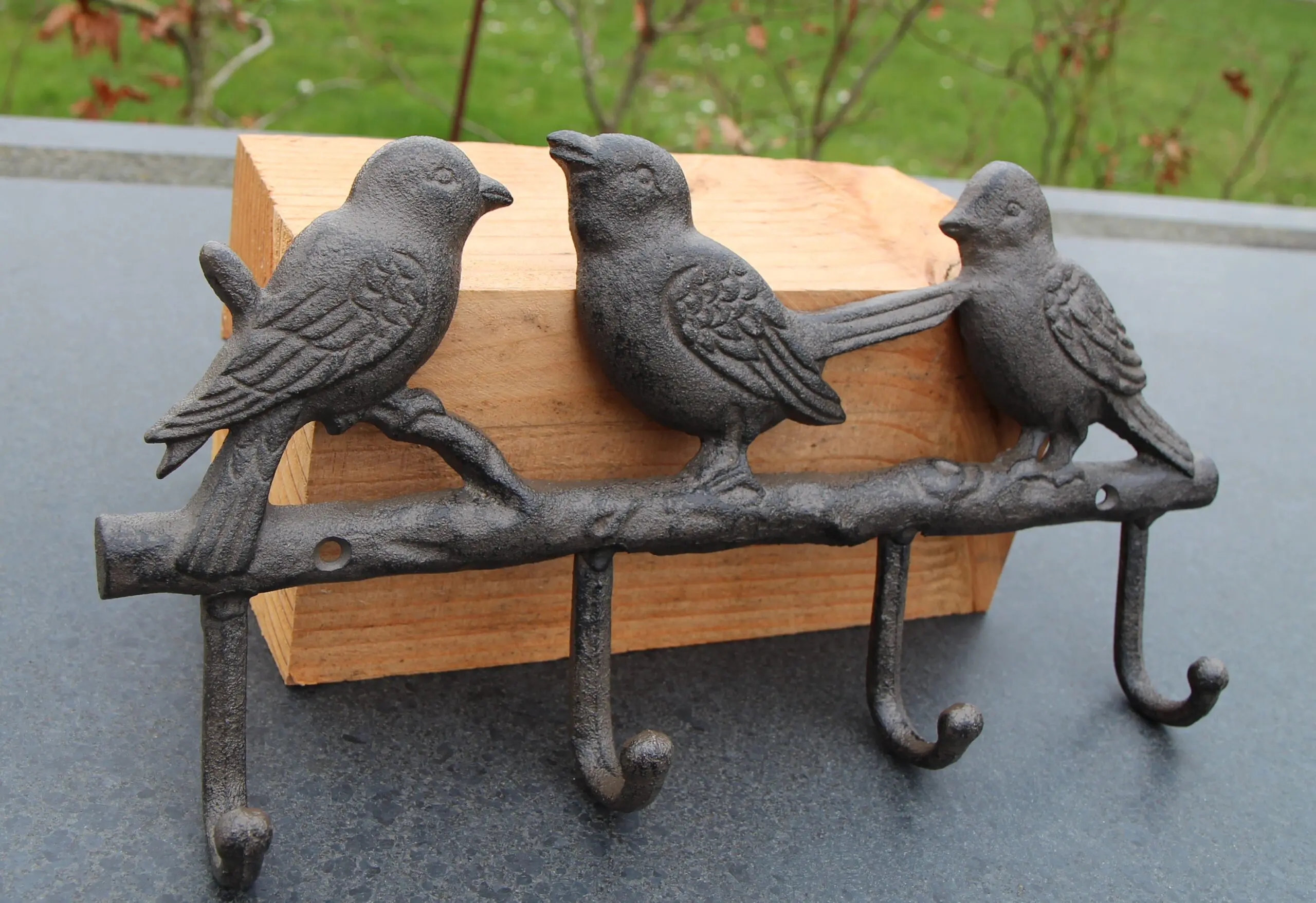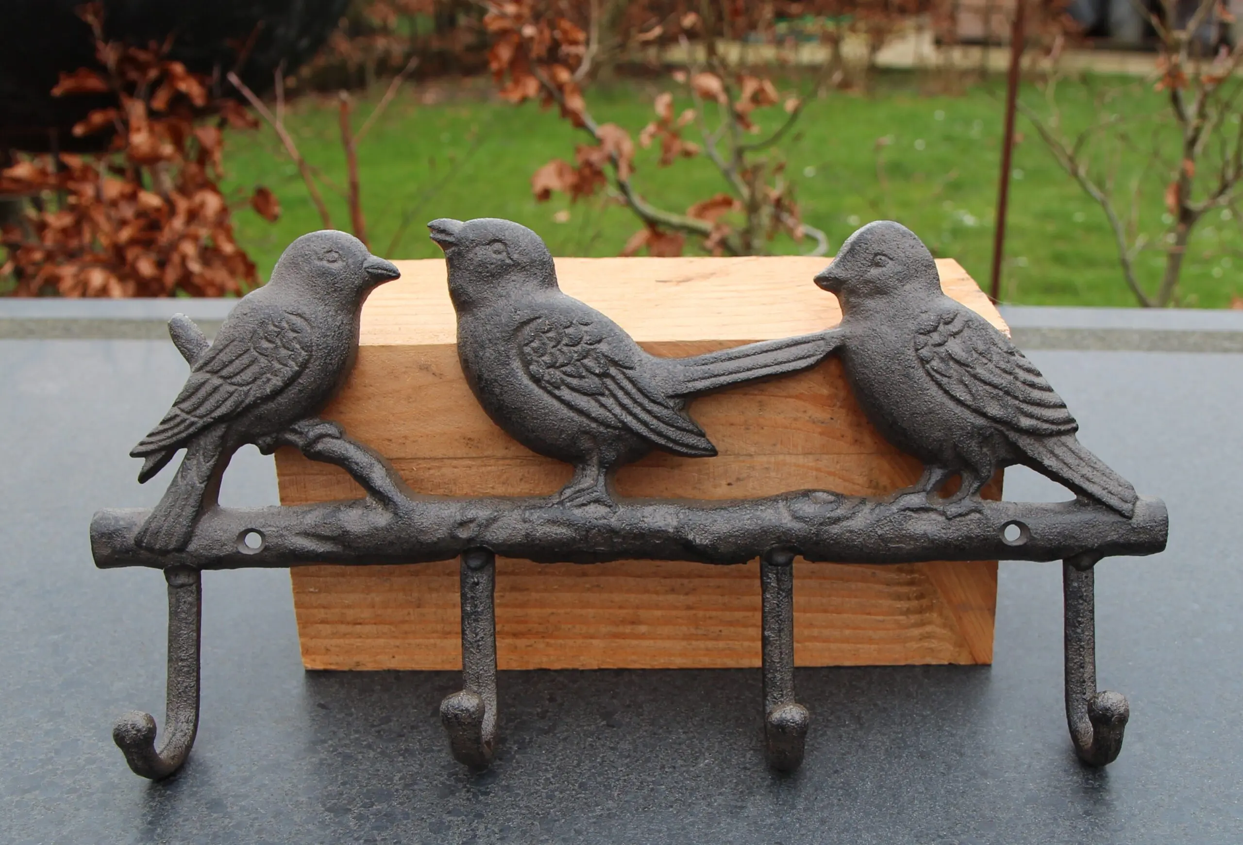 gietijzeren kapstok met 3 vogels en 4 haken donkerbruin