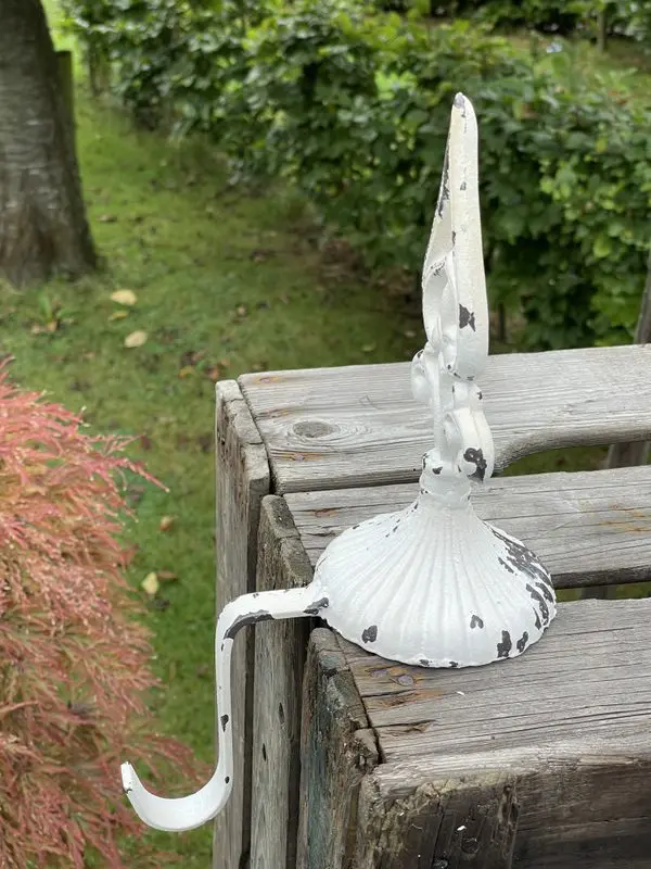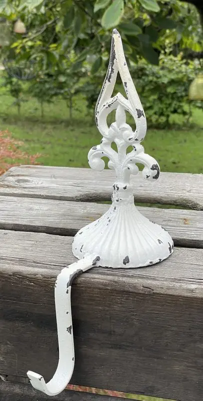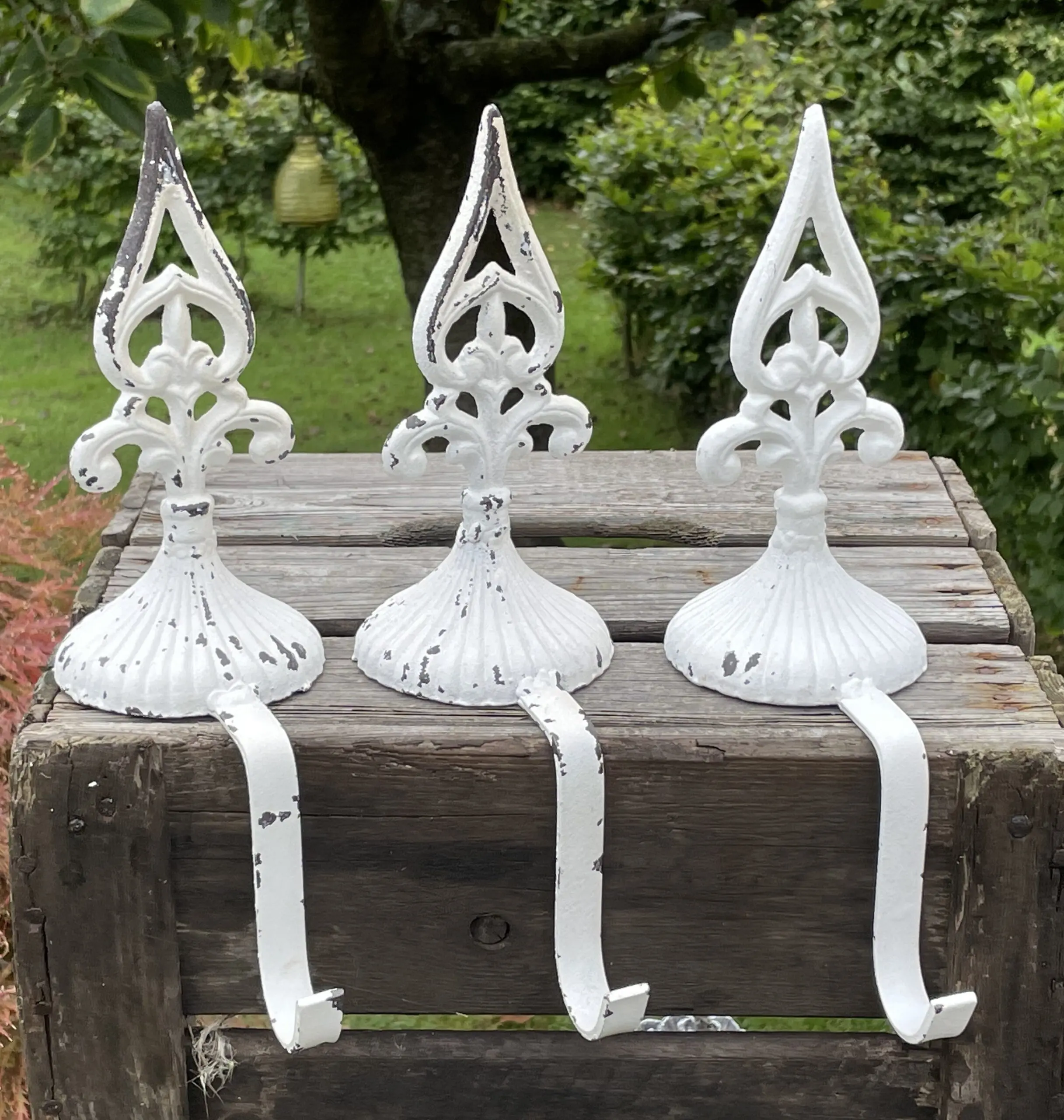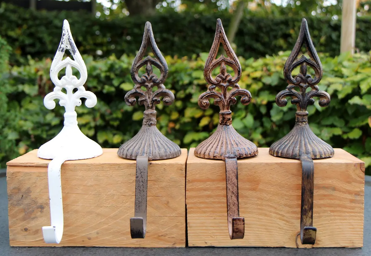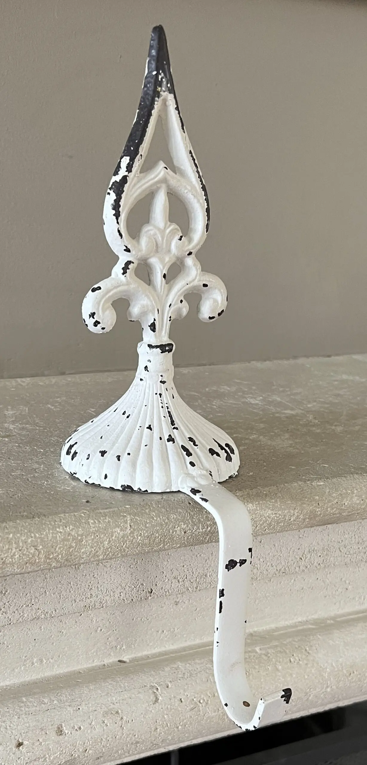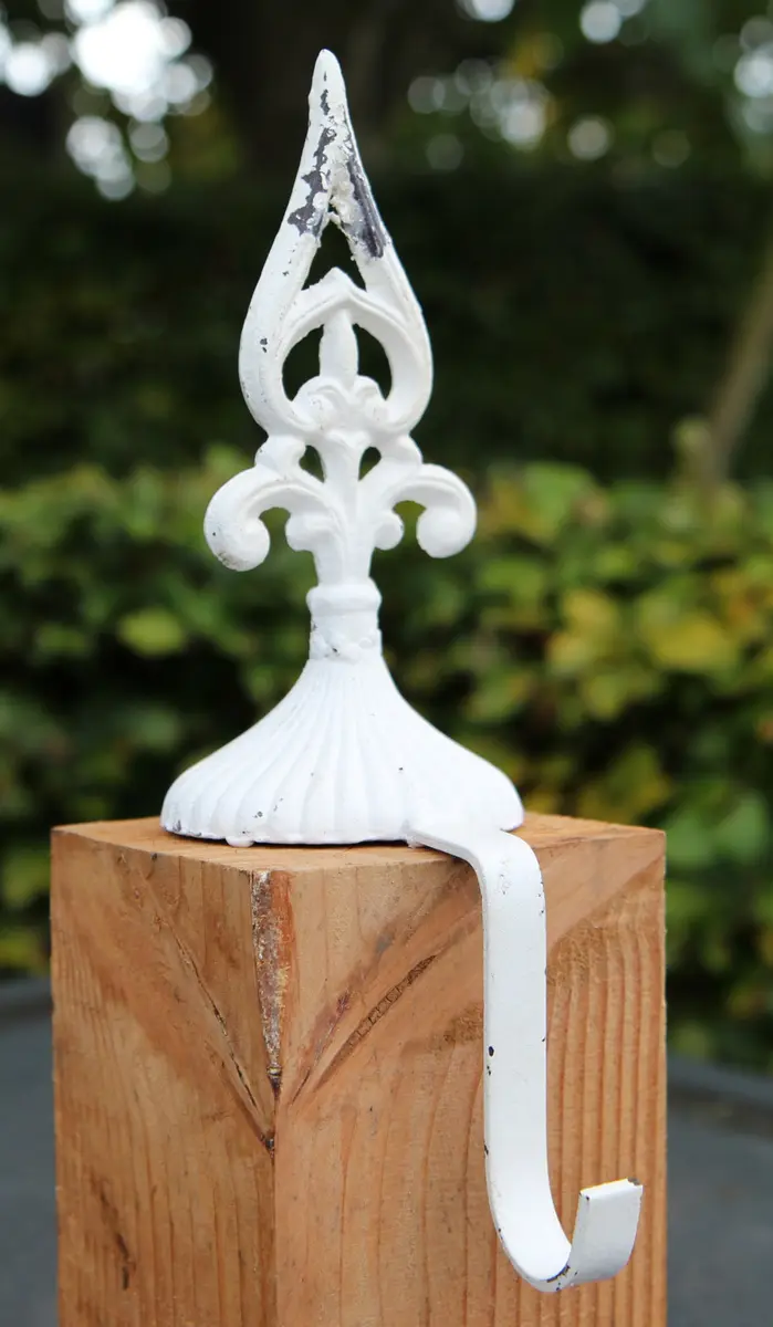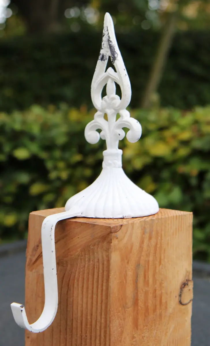 gietijzeren stocking hanger/kasthaak Franse lelie wit