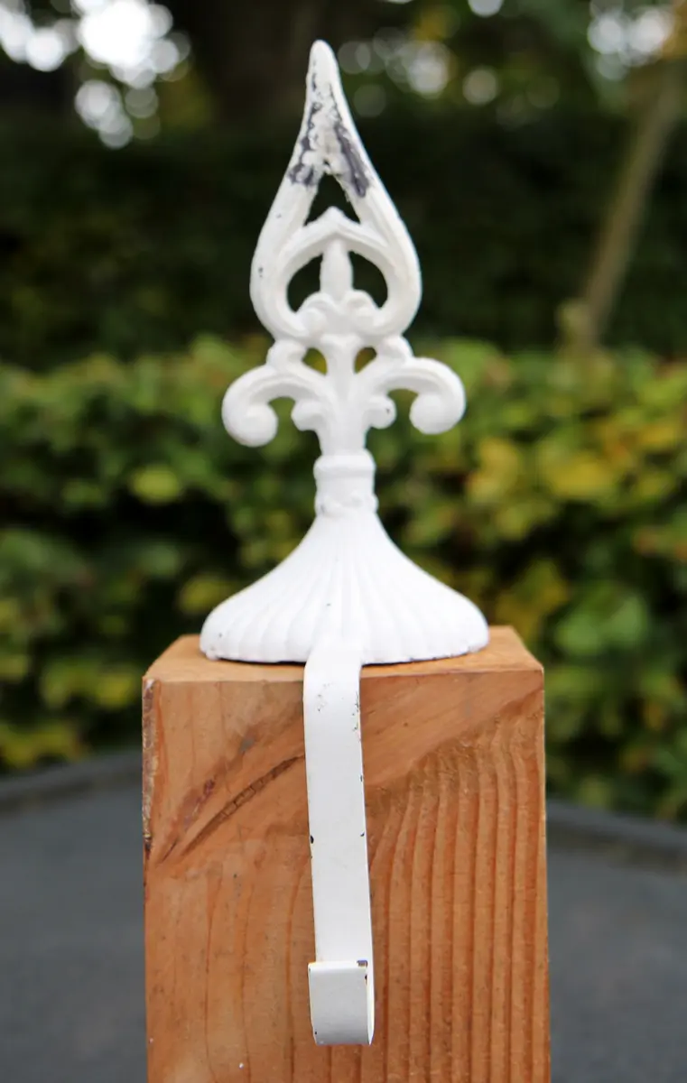 Stocking hanger franse lelie, lange haak, kasthaak, wit XM249