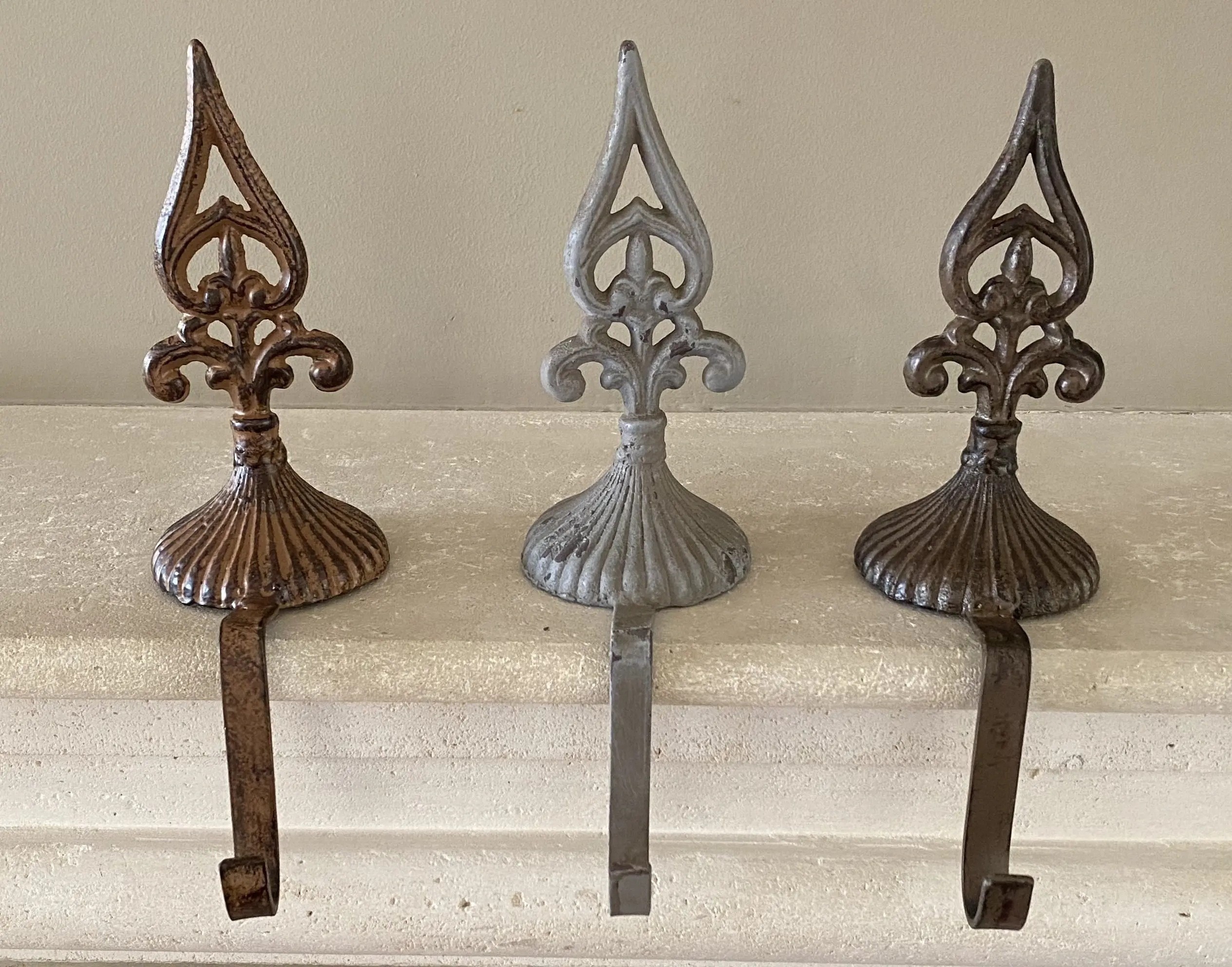 gietijzeren stocking hanger Franse lelie antiek grijs