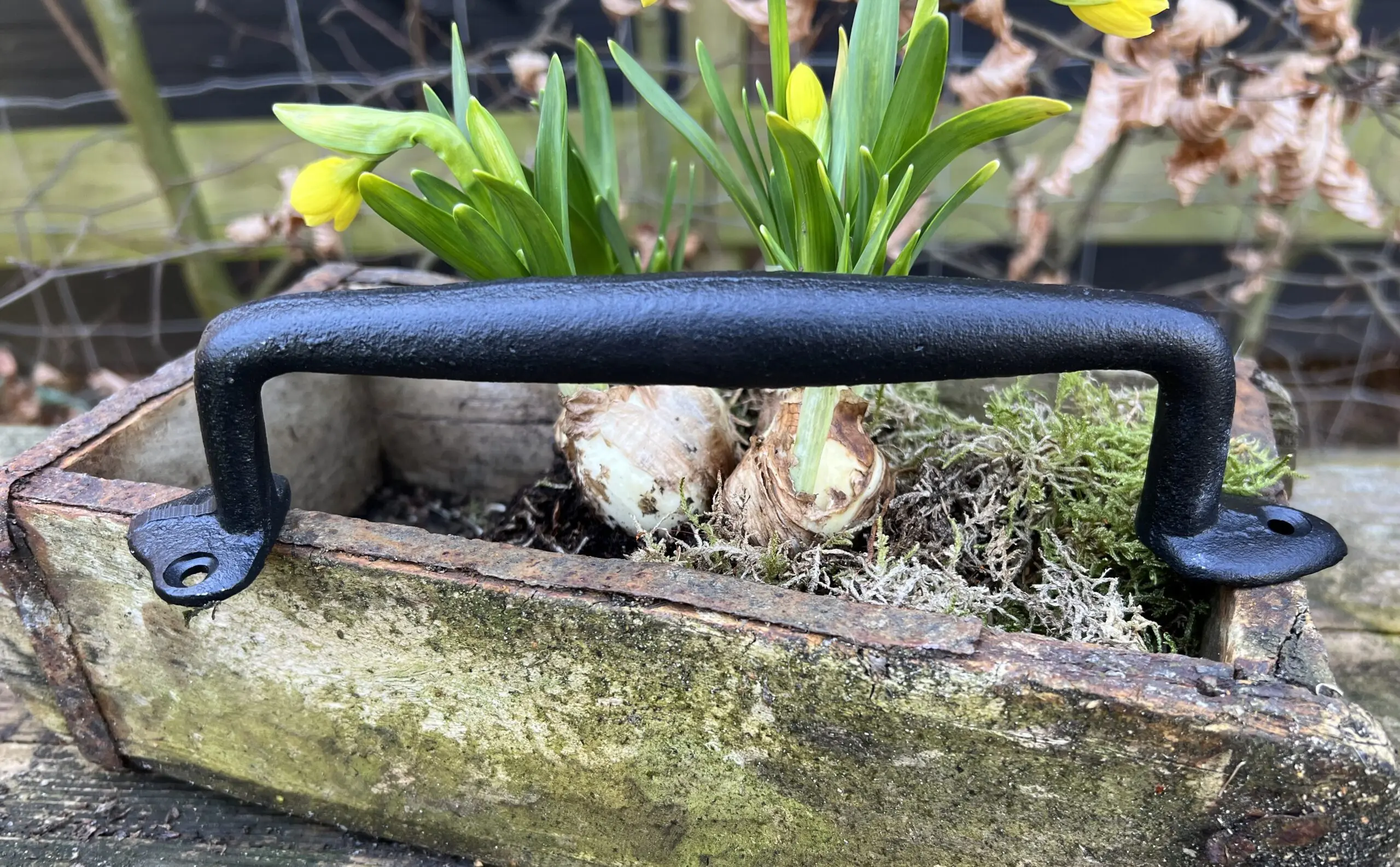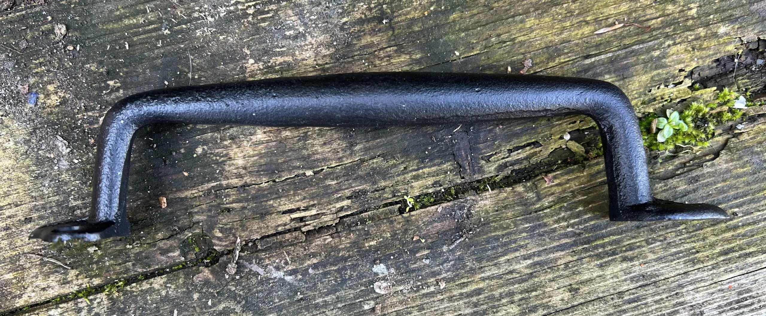 een wat grotere robuuste handgreep van gietijzer in de kleur donkerbruin/zwart