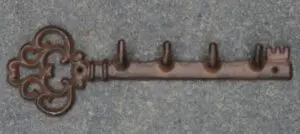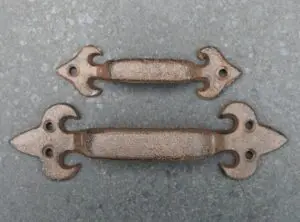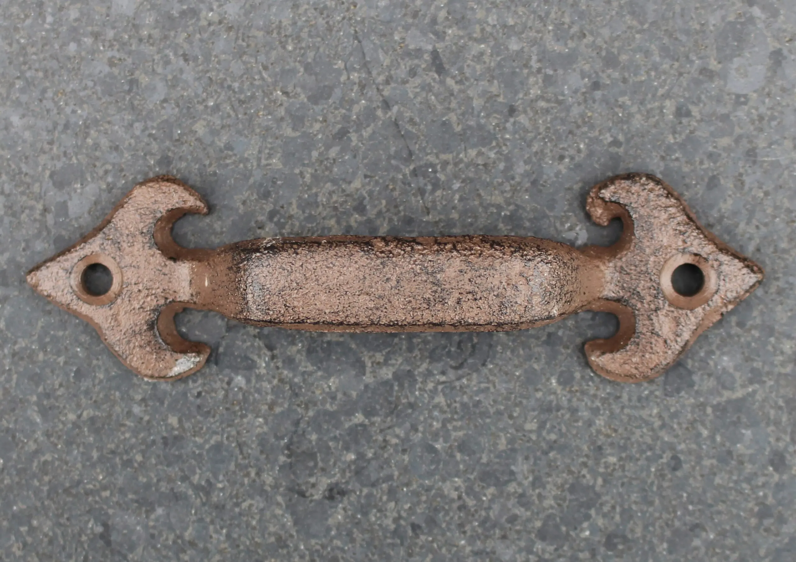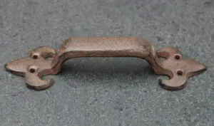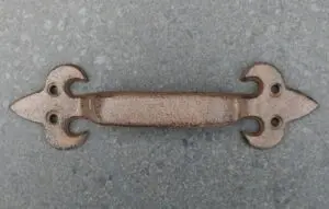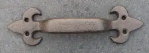 Mooie gietijzeren handgreep met aan het uiteinde de vorm van een Franse Lelie.