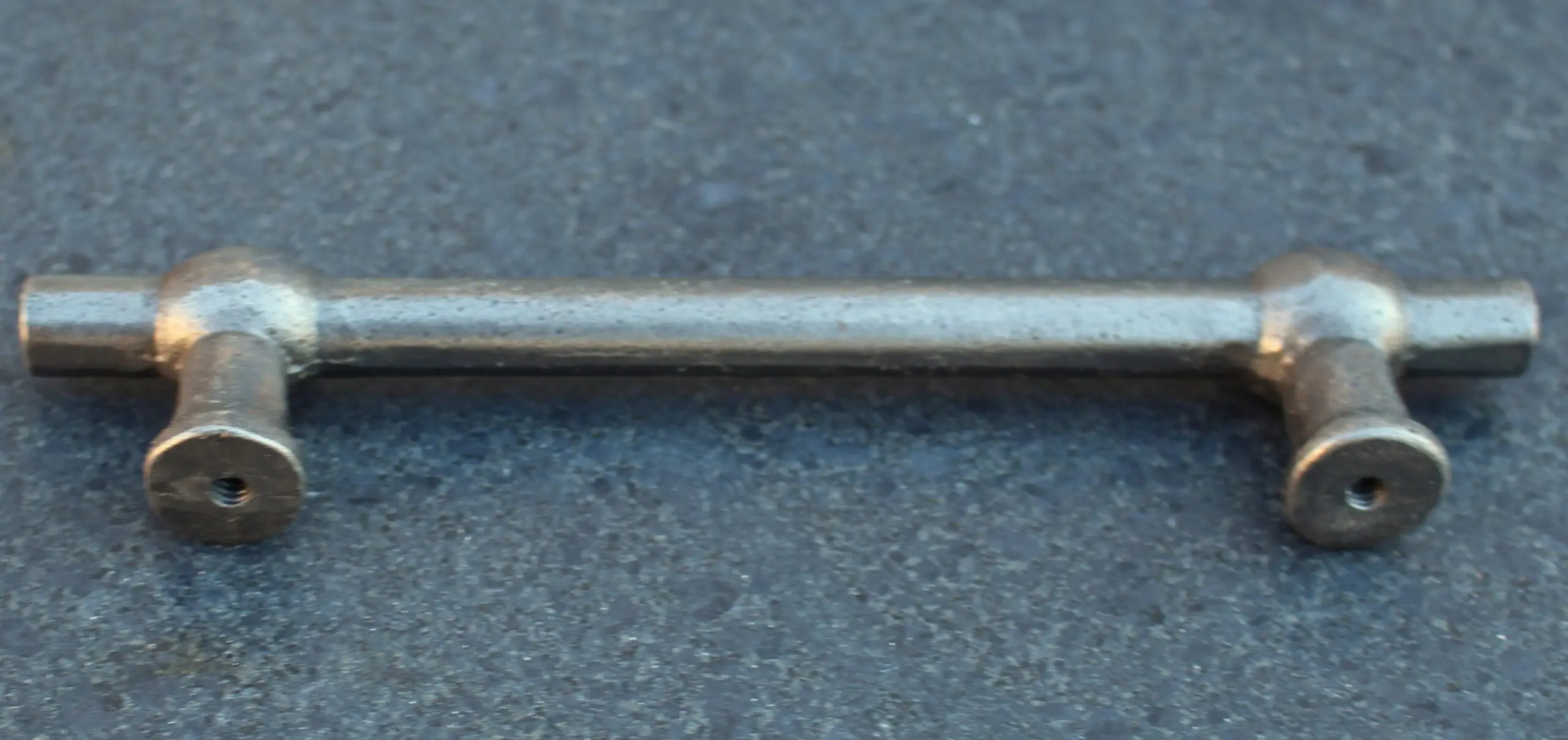 Een mooie antraciet kleurige industriële gietijzeren handgreep.