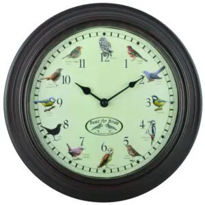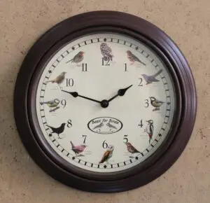 Het geluid van dat dier hoort u dan ook bij dat uur, dus ieder uur een ander dierengeluid.